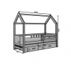 A Jaspis Házikó Ágy ideális megoldás azoknak a családoknak, akik a funkcionalitást esztétikával szeretnék ötvözni. Ez az elegáns, kétszínű bútor a tér maximális kihasználásával és a mindennapi használat kényelmével lett tervezve. Az ágy két szintből áll – a fő alvóhelyből és a kihúzható részből, amely remekül használható további alvó- vagy játszótérként.További előny a tágas fiókok, amelyek az ágy alatt helyezkednek el, és segítenek az ágynemű, játékok vagy ruhák tárolásában, így biztosítva a rendet a gyerekszobában. Masszív szerkezet biztonságos anyagokból és stabil keret biztosítja a kényelmet és a biztonságot. A Jaspis ház alakú ágy egy funkcionális, stílusos bútor, amely tökéletesen illeszkedik bármilyen belső térbe.Különböző színváltozatokban elérhető, lehetővé téve, hogy alkalmazkodjon gyermeke egyéni esztétikai preferenciáihoz!