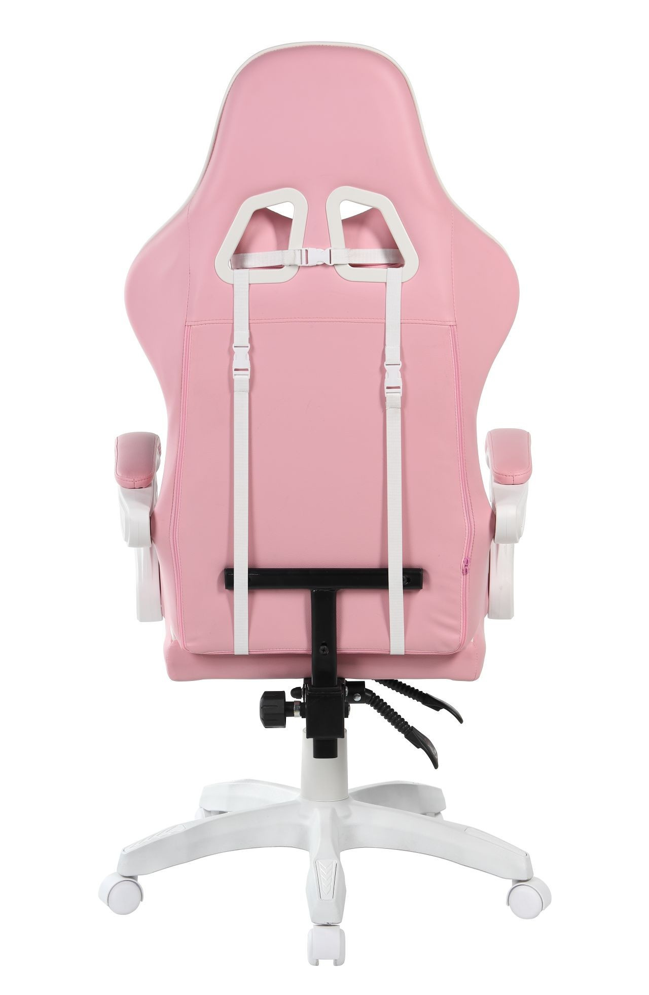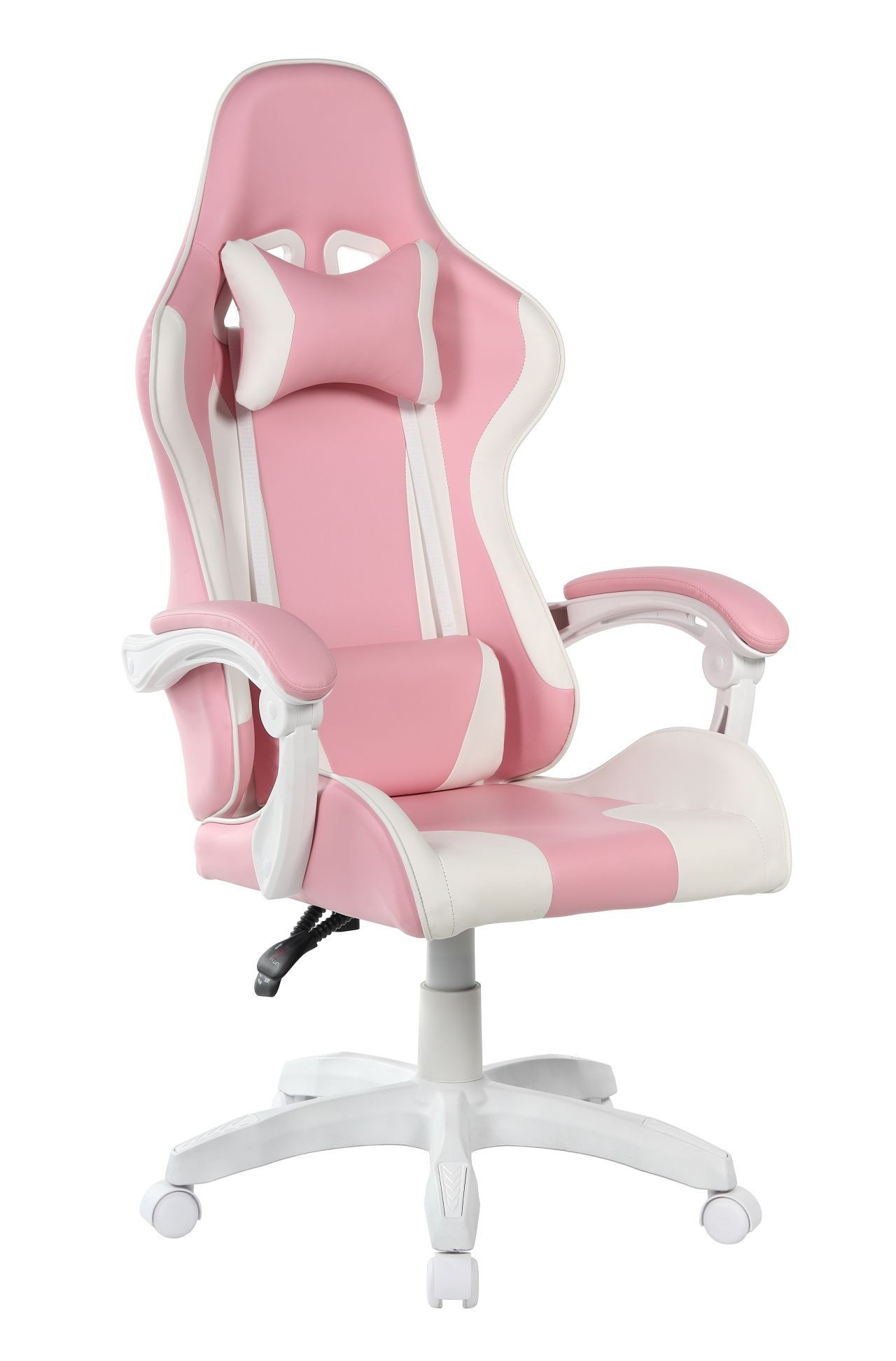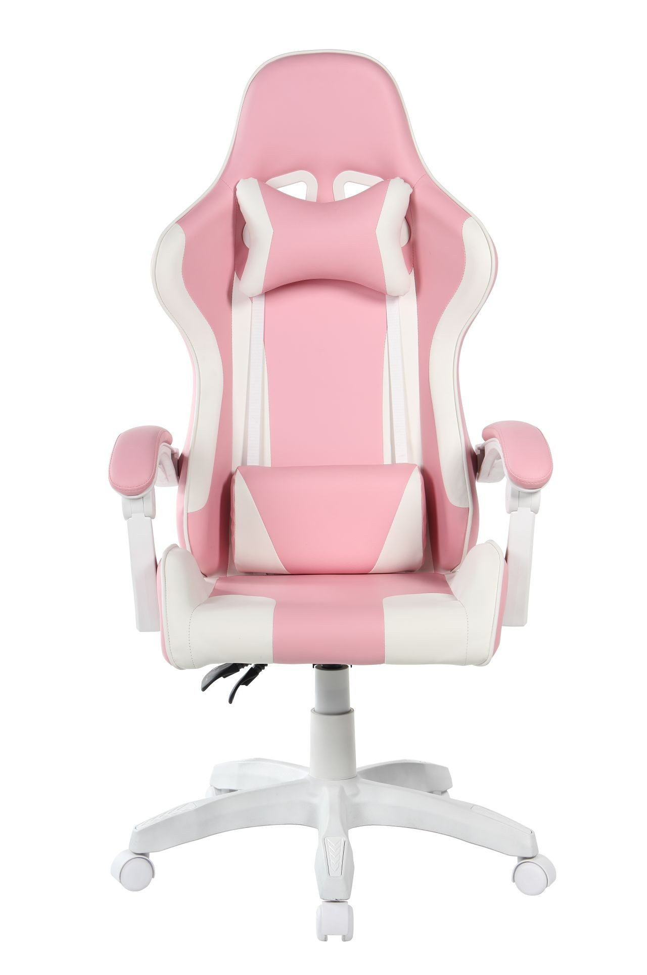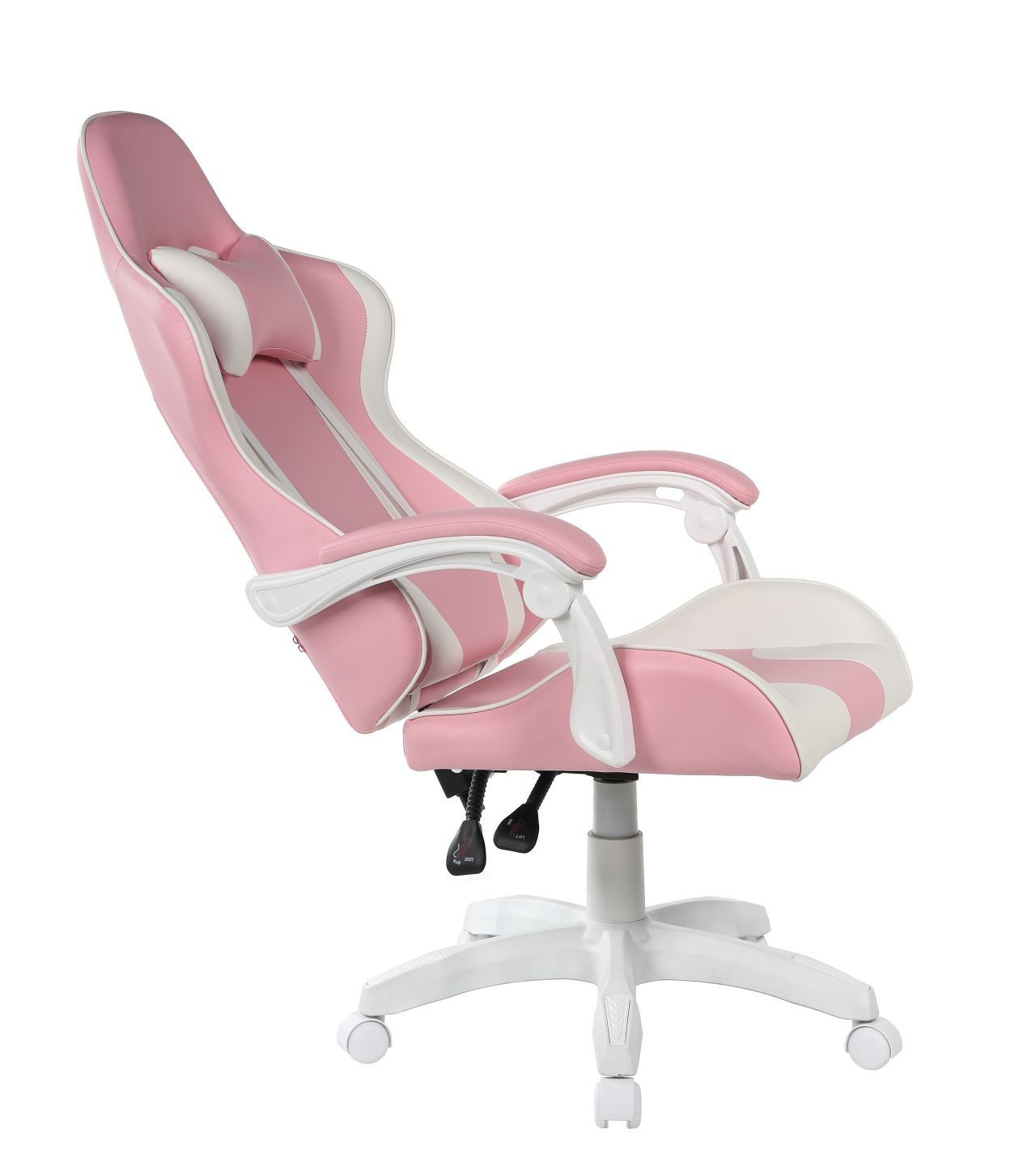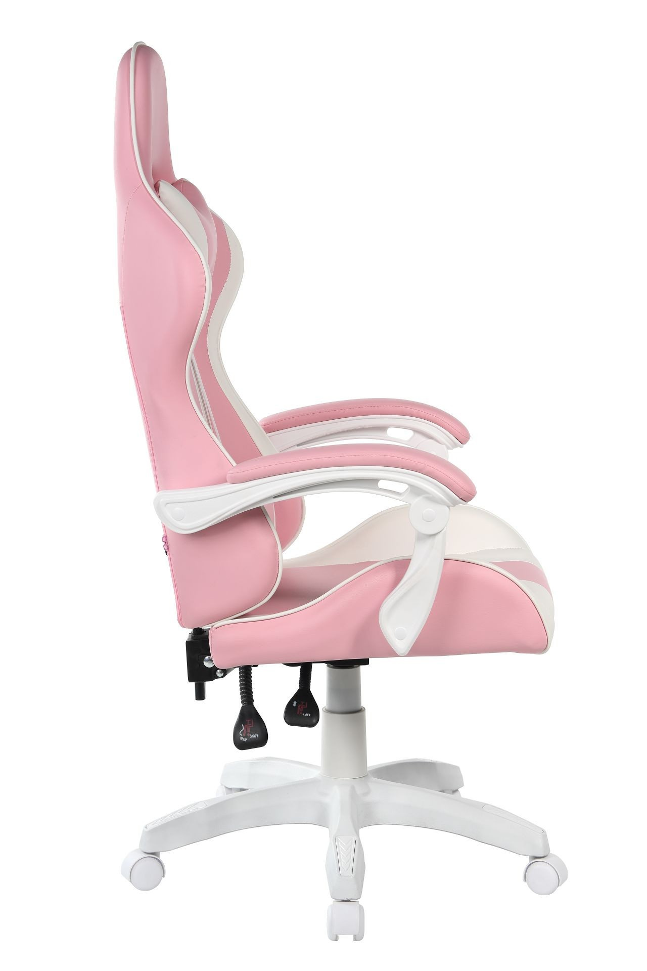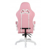 Méretek: - teljes magasság: 123-133 cm - ülésmagasság: 45-55 cm - karfa magasság: 67-77 cm - háttámla magasság: 82 cm - teljes szélesség: 64 cm - ülés szélesség: 52 cm - ülés mélység: 50 cm Anyag: - kárpitozás: ökobőr - alap: műanyag - kerekek: műanyag Szín: - ülés + háttámla: rózsaszín-fehér - alap: fehér Továbbiak: - dőlésszög: 120° - MultiBlock mechanizmus