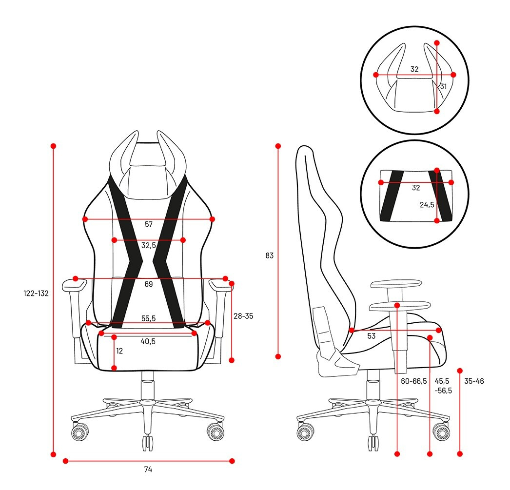 X-Horn 2.0 a te tested figyelembe véve lett tervezve. Formája tökéletesen támogatja a gerincet, minimalizálva ezzel a hátfájás kockázatát, és biztosítva a helyes testtartást még hosszú játékmenetek során is. Állítható párnák lehetővé teszik, hogy a széket pontosan az igényeidhez igazítsd, és az egyedi szarvas fejtámla optimális támogatást nyújt a nyaki gerincnek.