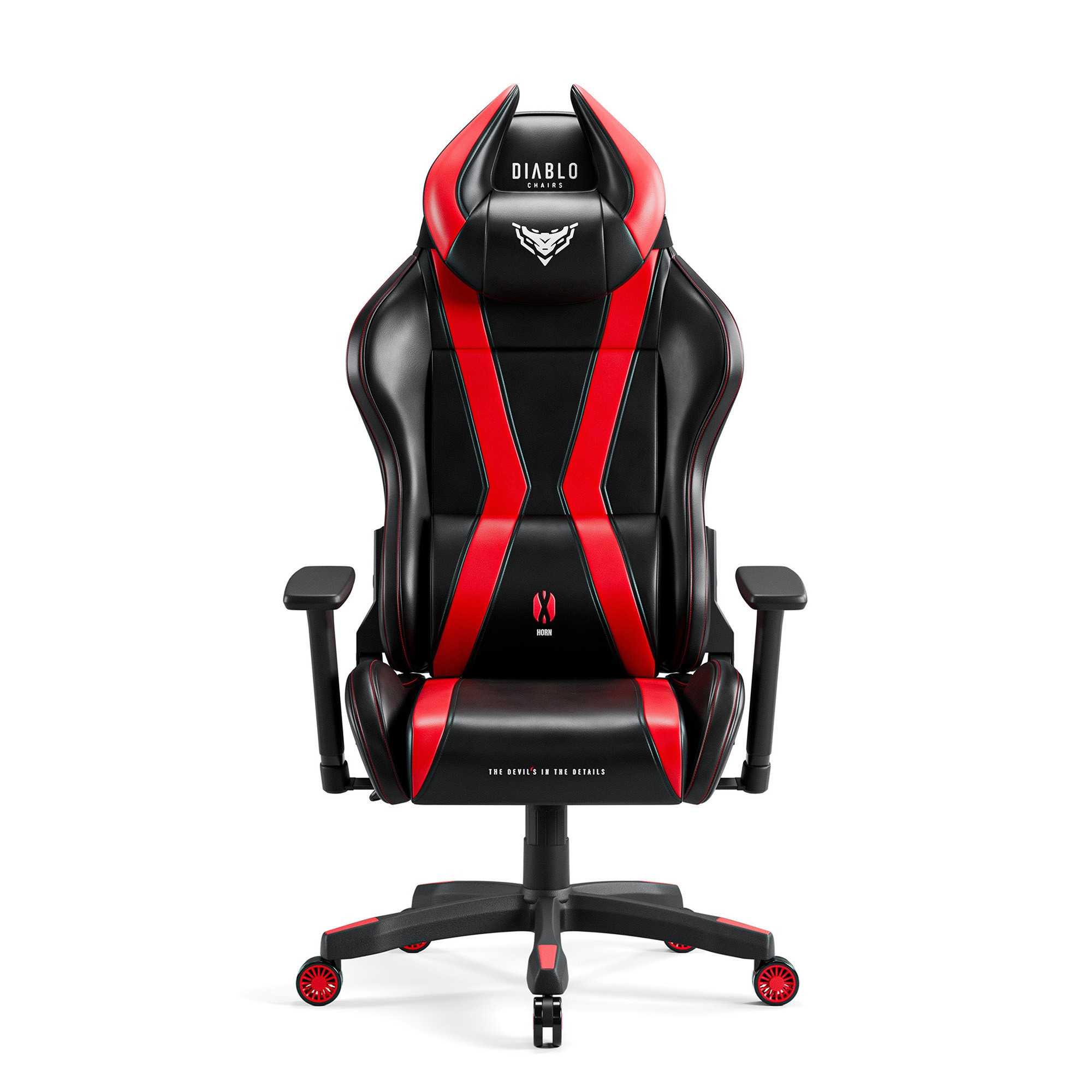 Már első pillantásra az X-Horn 2.0 agresszív, de egyben elegáns dizájnjával hívja fel magára a figyelmet. A mély fekete és a tüzes piros kombinációja dinamikus kontrasztot hoz létre, amely kiemeli sportos sziluettjét. A szék sarkai és a hímzett logó egyedi jelleget kölcsönöznek, és garantálják, hogy a játéktered domináns eleme lesz.