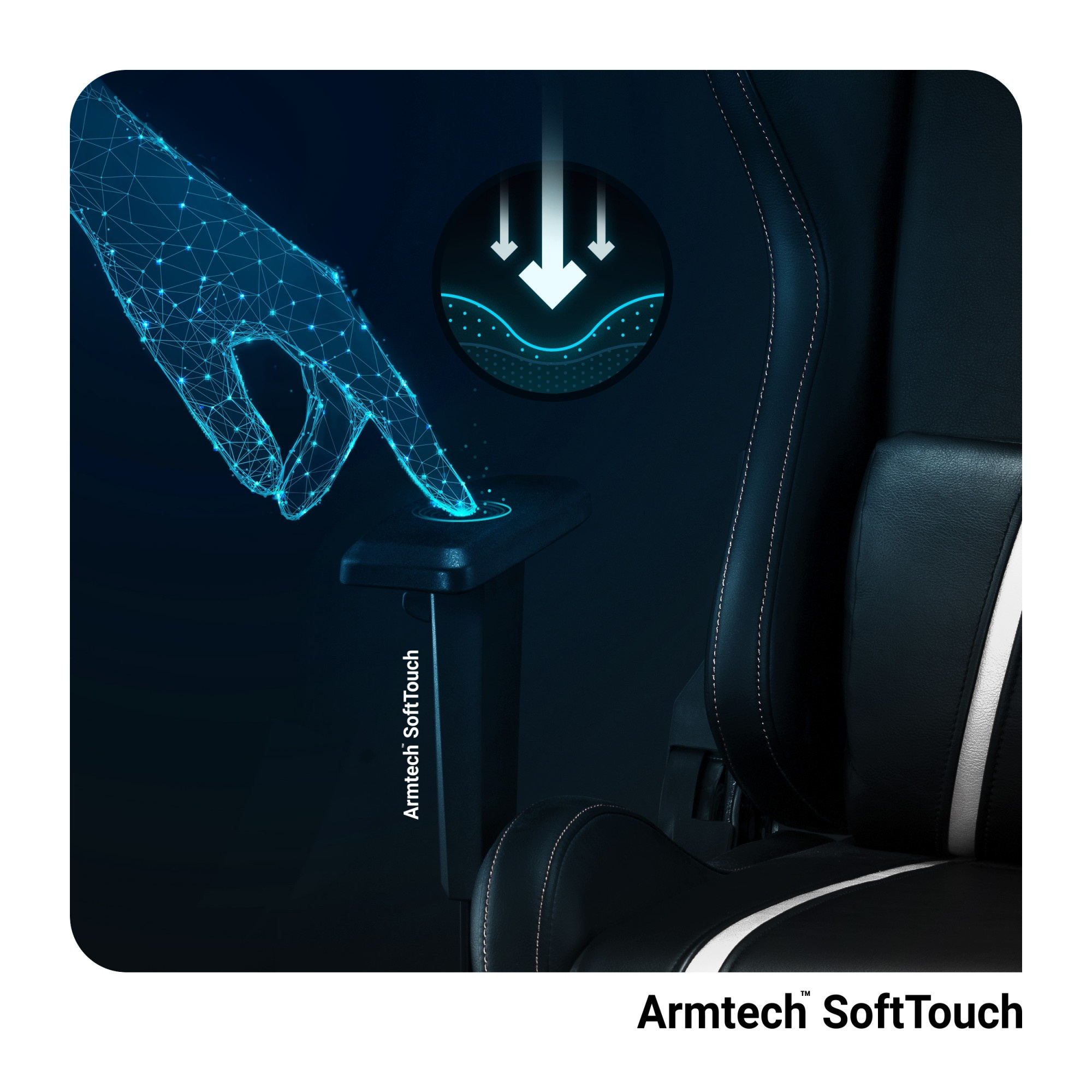 Modern Armtech™ Vertical SoftTouch karfák függőleges síkban felfelé-lefelé állítható, és elengedhetetlen támogatást nyújt a vállak, alkarok és csuklók számára. A megfelelően beállított magasság stabilizálja az egész testet, ami megkönnyíti a biztonságos és kényelmes testtartás felvételét. A kartámaszok felső része habbal van kitöltve, ami rendkívül puhává teszi, és kényelmes támaszt nyújt az alkaroknak.