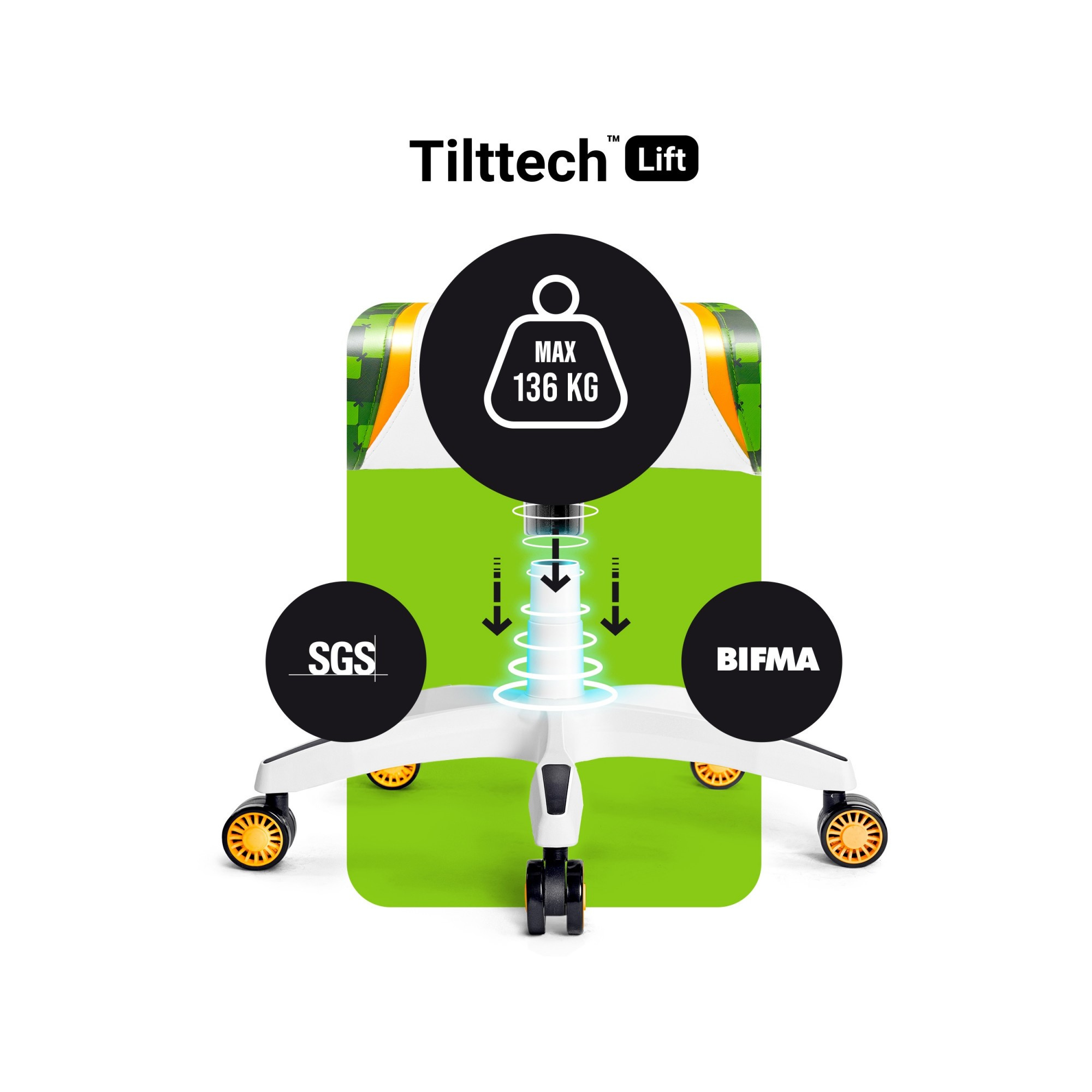 - Tilttech™ Gear: Döntse hátra a háttámlát akár 140°-os szögig, és rögzítse bármilyen pozícióban. Szerezze meg az optimális támogatást és kényelmet minden helyzetben, akár játszik, dolgozik vagy pihen.
