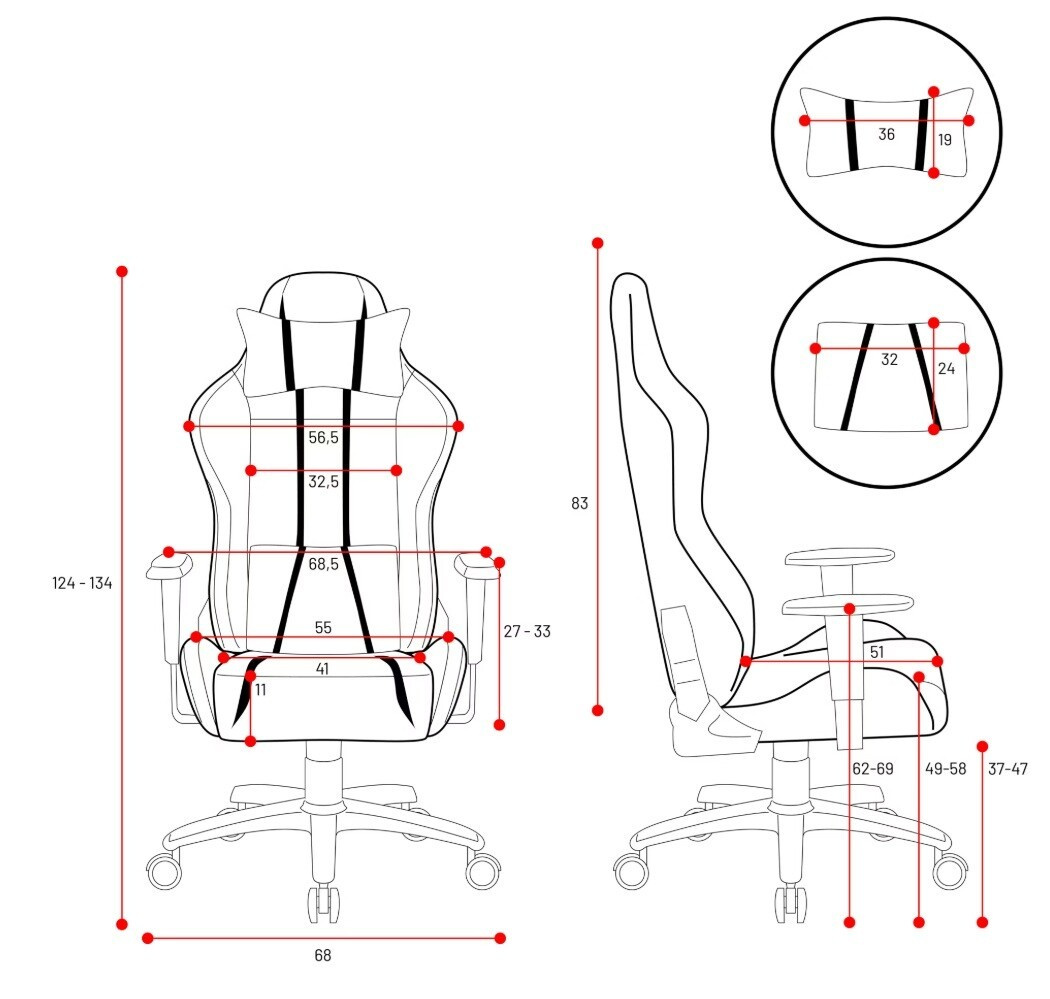 - Állítható magasság: Igazítsa a széket pontosan a saját magasságához és a játékasztal magasságához. A felfelé-lefelé történő zökkenőmentes szabályozás lehetővé teszi, hogy megtalálja az ideális pozíciót a maximális kényelem érdekében.