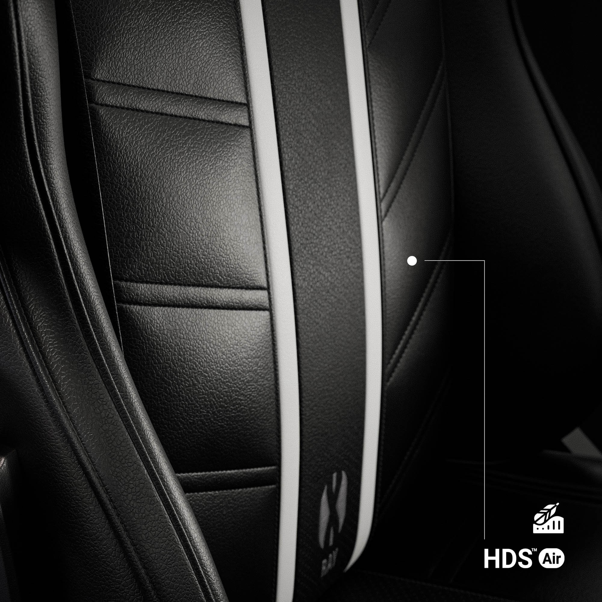 - Eko-bőr HDS™ és HDS Air™: A szék kiváló minőségű HDS™ eko-bőrrel van bevonva, amely tartós és könnyen tisztítható. A maximális légáteresztés érdekében az ülés perforált HDS Air™ ökobőrrel van bevonva.