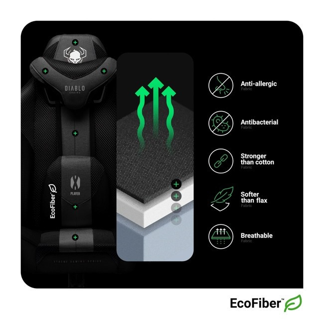0 készült tartós és légáteresztő Honeycomb™ szövetből és EcoFiber™ szálból. Ez a kombináció optimális légáramlást biztosít, és megakadályozza a túlmelegedést még hosszú játékmaratonok során is. A sima HDS™ ökobőr az ülés oldalán és a háttámla hátulján elegáns megjelenést kölcsönöz a széknek.Kényelmes ülés HR habbal töltve