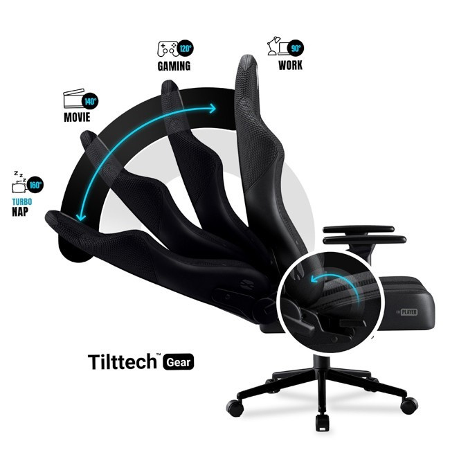 A Tilttech™ Gear mechanizmus lehetővé teszi a háttámla megfelelő szögének gyors és pontos beállítását. Így könnyen megtalálhatja az ideális pozíciót a játékhoz, munkához vagy pihenéshez.