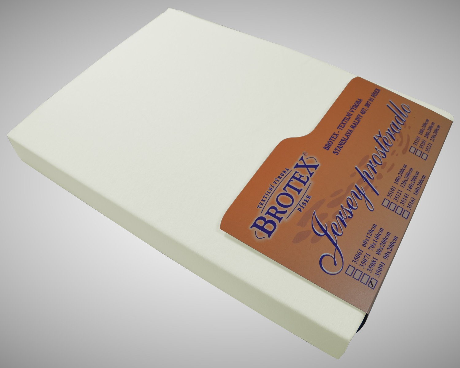 Napínací prostěradlo jersey je vyrobeno z velmi jemné napínací pleteniny ze 100% bavlny. Plošná hmotnost pleteniny jersey je 145g/m2. Pletenina je hladká, na omak velmi příjemná a jemná.