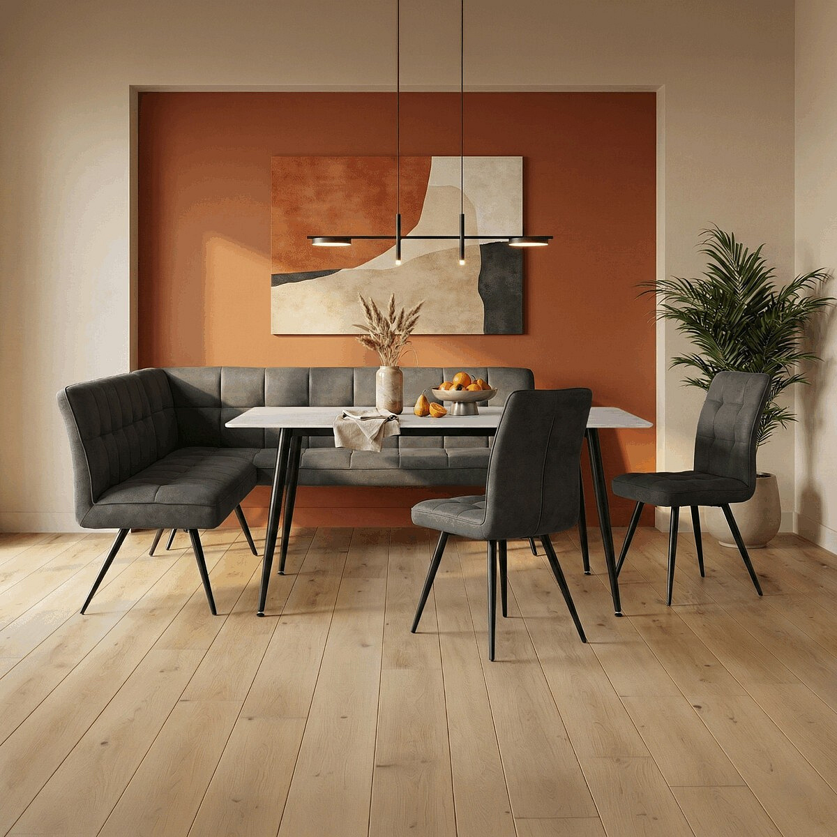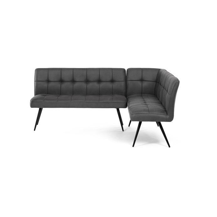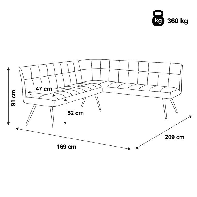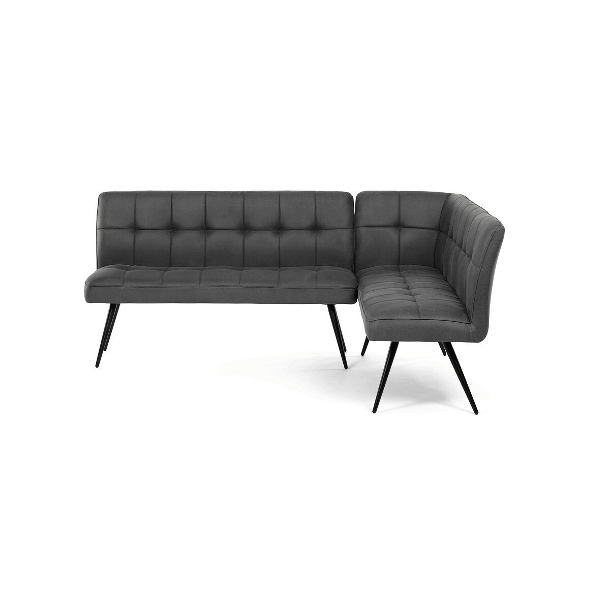 Stylová rohová jídelní lavice značky Autronic nabízí ideální kombinaci pohodlí a moderního designu. Čalounění z odolné látky s jemným povrchem je doplněno o černé kovové nohy, které dodávají lavici stabilitu a elegantní vzhled. Měkké polstrování z PU pěny zajišťuje komfort při sezení, a to i během delších jídel. Díky svému minimalistickému provedení se snadno začlení do jakékoliv jídelny. Tato lavice je skvělou volbou pro ty, kdo hledají funkční a stylový nábytek.