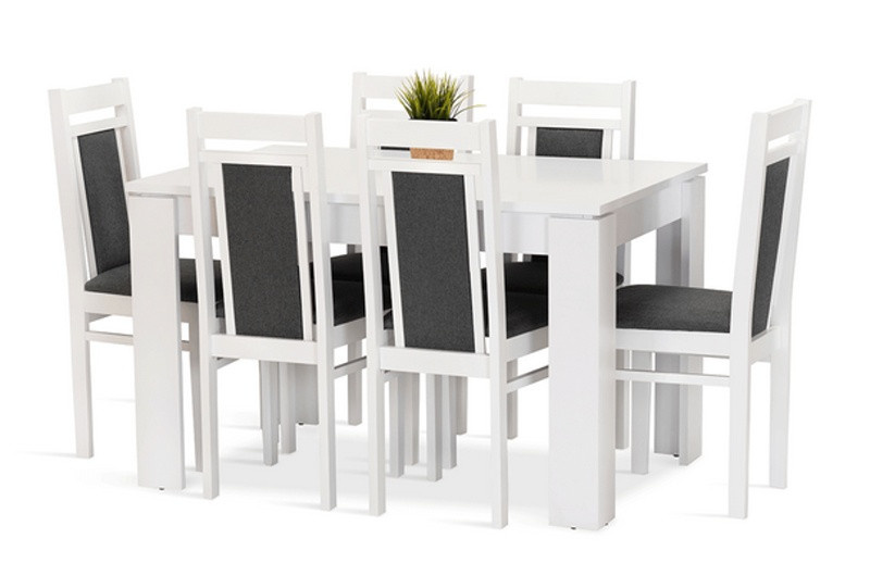 Jídelní sestava Akord 6 se skládá ze stolu a šesti židlí. Tato jídelní sestava splní svůj účel na výbornou nejen v kuchyni, ale i v jídelně, nebo obývacím pokoji s jídelním koutem. Svou vysokou kvalitou a precizním zpracováním, uspokojí všechny budoucí, i ty velmi náročné, uživatele. Stůl je vyrobený z bílého matného lamina tl.22 mm, kostry židlí z bukového dřeva, barveného na bílou barvu. Jídelní sestava je dodávaná v demontu. Součástí balení je schématický montážní návod, včetně všech potřebných spojovacích prvků. Cena je uvedena za jídelní stůl a 6 židlí. Vlivem nastavení monitorů, nebo displejů telefonů, se zobrazení barev na fotograii může od skutečnosti lišit. Úvodní fotografie je ilustrační. Židle budou dodané v zelené barvě.