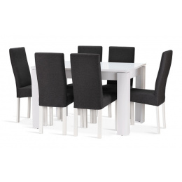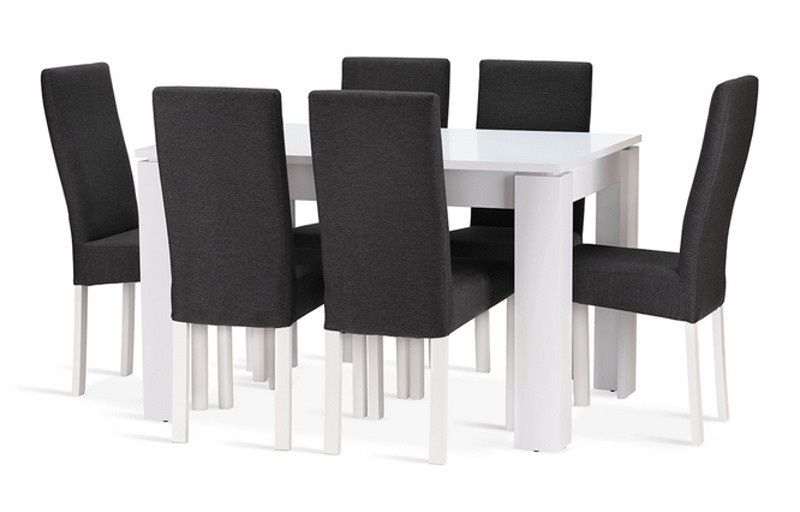 Jídelní sestava Neon 6 se skládá ze stolu a šesti židlí. Tato jídelní sestava svou vysokou kvalitou a precizním zpracováním uspokojí všechny budoucí uživatele. Stůl je vyrobený z bílého matného lamina tl.22 mm, kostry židlí z bukového dřeva, barveného na bílou barvu. Jídelní sestava je dodávaná v demontu. Součástí balení je schématický montážní návod, včetně všech potřebných spojovacích prvků. Cena je uvedena za jídelní stůl a 6 židlí. Vlivem nastavení monitorů, nebo displejů telefonů, se zobrazení barev na fotograii může od skutečnosti lišit. Úvodní fotografie je ilustrační. Židle budou dodány v zelené barvě.