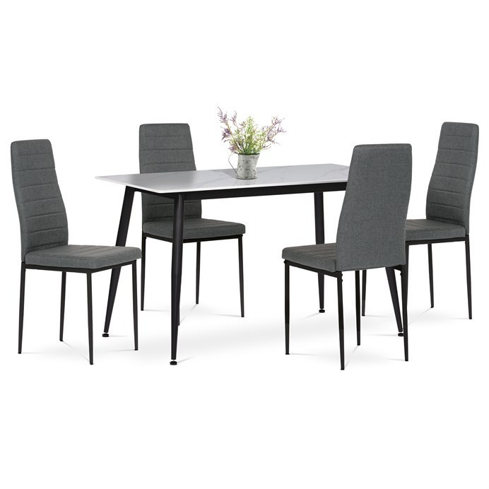 Jídelní set s 4 židlemi, 130x70x76cm, keramika, mramor, ASE-1004 GREY2