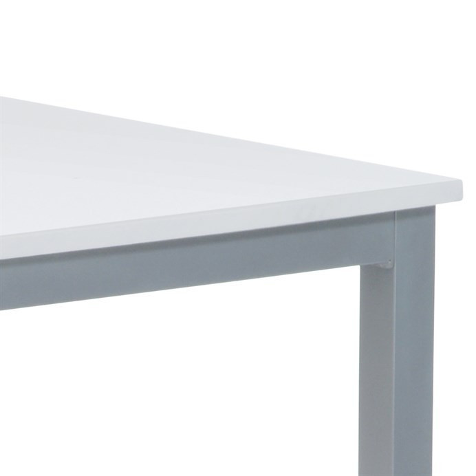 Jídelní stůl o délce 110 cm a šířce 70 cm v minimalistickém klasickém stylu. Stolní deska tl. 2 cm je z čistě bílé matné MDF obdélníkového tvaru. Nohy a konstrukce je kovových profilů čtvercového průřezu. Nohy jsou ve spodní části opatřeny plastovými záslepkami s kluzáky, zabraňující poškození podlahové krytiny. Povrchová úprava je práškovou vypalovací barvou ve stříbrnošedém odstínu.Výška stolu je 75 cm. Stůl se hodí do menších a střídně zařízených kuchyní i jídelen, svým neutrálním designem najde úspěšné uplatnění i v jiných prostorách. Dále je ho možné použít i jako psací či pracovní na lehčí činnosti, vzhledem k jeho subtilnosti. Vhodné židle jsou nejen se stejně barevnou podnoží, ale nebojte se experimentovat i se dřevem či plastem. Ke stolu je možné umístit 4 židle.