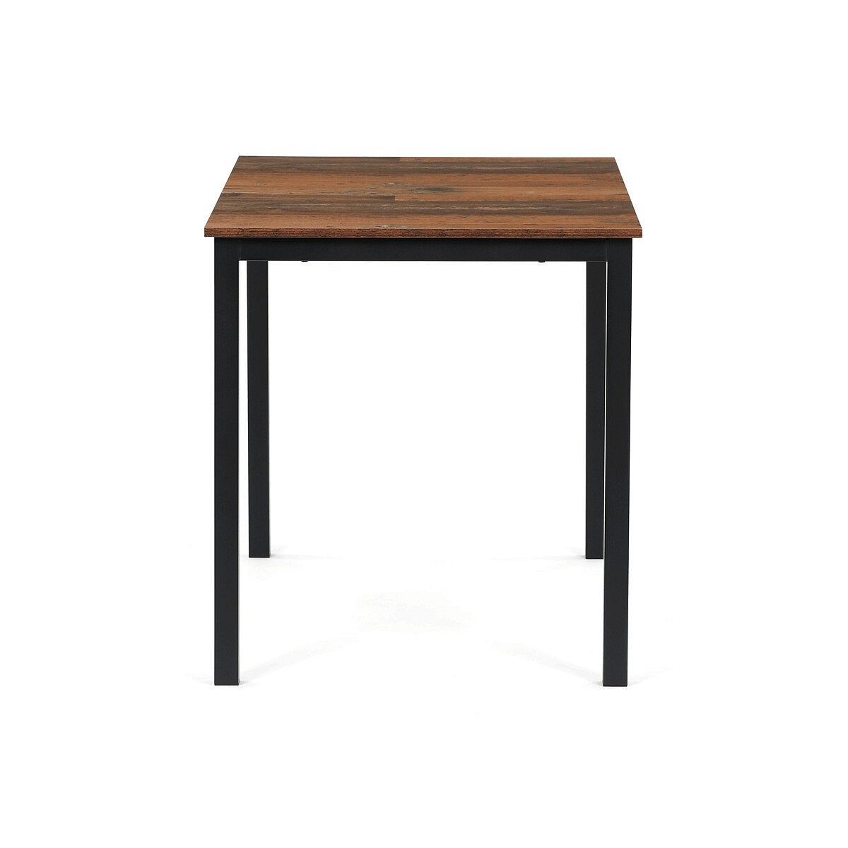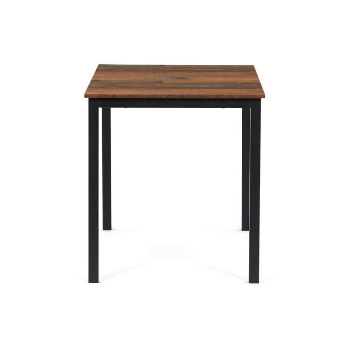 Jídelní stůl o rozměrech 110 × 70 × 75 cm kombinuje desku z MDF s dekorem starého dřeva a stabilní kovovou podnož v černém matném laku. Deska je navržena pro snadnou údržbu a odolnost vůči běžnému opotřebení, což zajišťuje dlouhodobou funkčnost v domácím i komerčním prostředí. Kovová podnož přispívá k celkové stabilitě a pevnosti stolu, zatímco minimalistický design umožňuje jeho univerzální využití v moderních i tradičních interiérech. Stůl není rozkládací, což podtrhuje jeho jednoduchost a pevnost. Díky svým rozměrům poskytuje dostatek prostoru pro pohodlné stolování či práci.