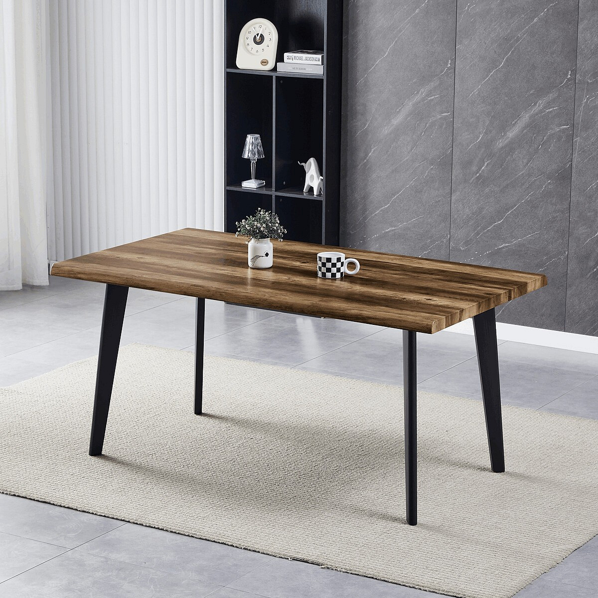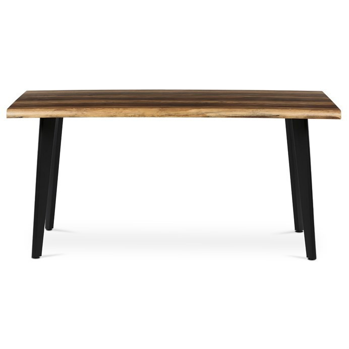 Tento jídelní stůl značky Autronic v přírodním dekoru starého dřeva vnáší do interiéru rustikální kouzlo s moderním nádechem. Obdélníková deska z kvalitního MDF materiálu imituje vzhled opracovaného dřeva a přidává prostoru na autentičnosti a teple. Černé kovové nohy přidávají industriální kontrast a zajišťují pevnost a stabilitu. Svým nadčasovým designem a praktickými rozměry 160x90x75 cm se tento stůl hodí do různých stylů jídelen i kuchyní. Vyberte si tento elegantní a odolný stůl od Autronic a dopřejte si pohodlné rodinné stolování s nádechem přírody.