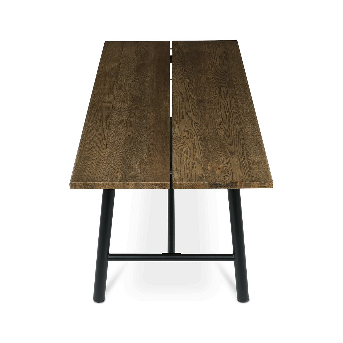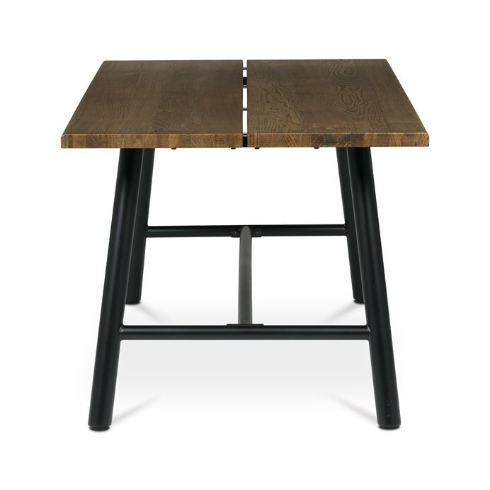 Jídelní stůl značky Autronic v industriálním stylu je skvělou volbou pro rodinné večeře. Jeho dýhová deska v dekoru ořechu dodává interiéru teplý a přírodní nádech, zatímco černé kovové nohy zajišťují stabilitu a odolnost. Obdélníkový tvar a matný povrch podtrhují moderní vzhled stolu. Díky robustní konstrukci se tento stůl stane centrálním prvkem každé jídelny. Stůl se skládá ze dvou samostatných kusů desky, což podtrhuje jeho nadčasový design.