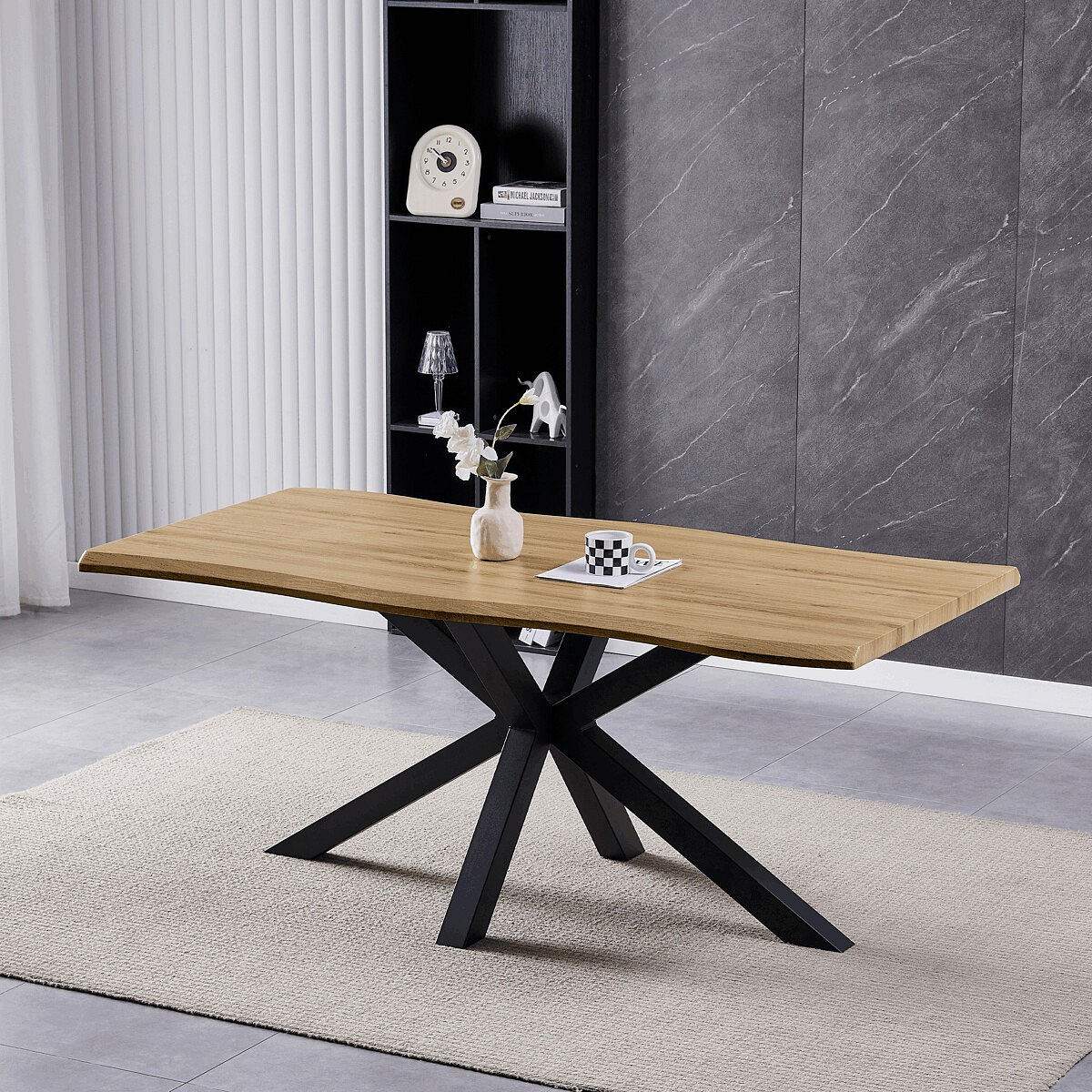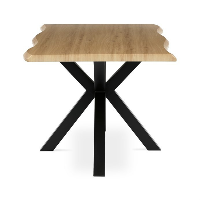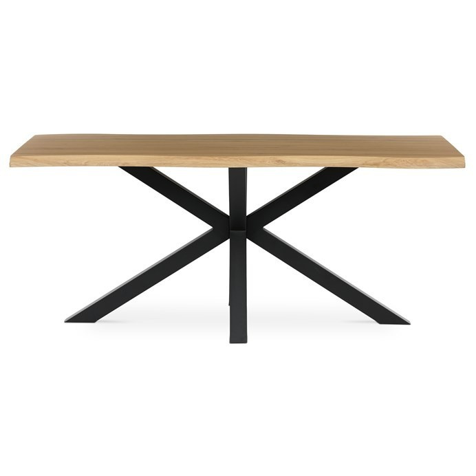 Moderní jídelní stůl od značky Autronic zaujme svým elegantním designem a kombinací přírodního vzhledu desky s industriální kovovou podnoží. Povrch desky v dekoru divokého dubu dodává stolu jedinečný charakter, zatímco černé nohy zajišťují stabilitu a stylový kontrast. Obdélníkový tvar a dostatečný prostor umožní pohodlné stolování pro celou rodinu. Tento stůl je ideální volbou pro moderní i rustikální interiéry, kde se stane dominantním prvkem každé jídelny.