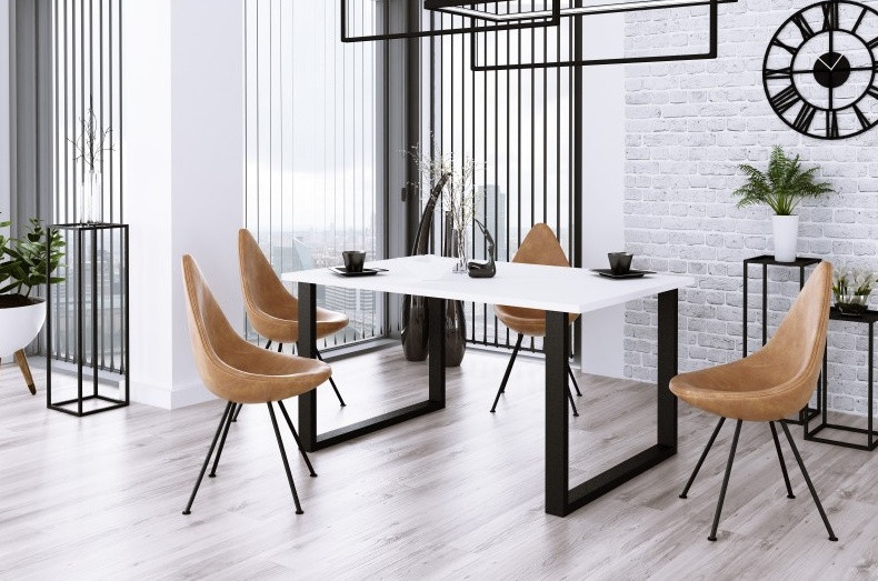 Jídelní stůl Indigo je vyrobený v nadčasovém stylu, který se hodí do každé moderní domácnosti. Deska stolu je z lamina tl.28 mm, nohy jsou kovové, matné v černé barvě. Stůl se skvěle hodí nejen do jídelny, ale i do kuchyně nebo do jídelního koutu v obývacím pokoji. Stůl je dodávaný v demontu. Součástí balení je montážní návod včetně všech spojovacích prvků. Vlivem nastavení monitorů, nebo displejů telefonů, se zobrazení barev na fotograii může od skutečnosti lišit. Vyobrazené dopňky a dekorace nejsou v ceně.