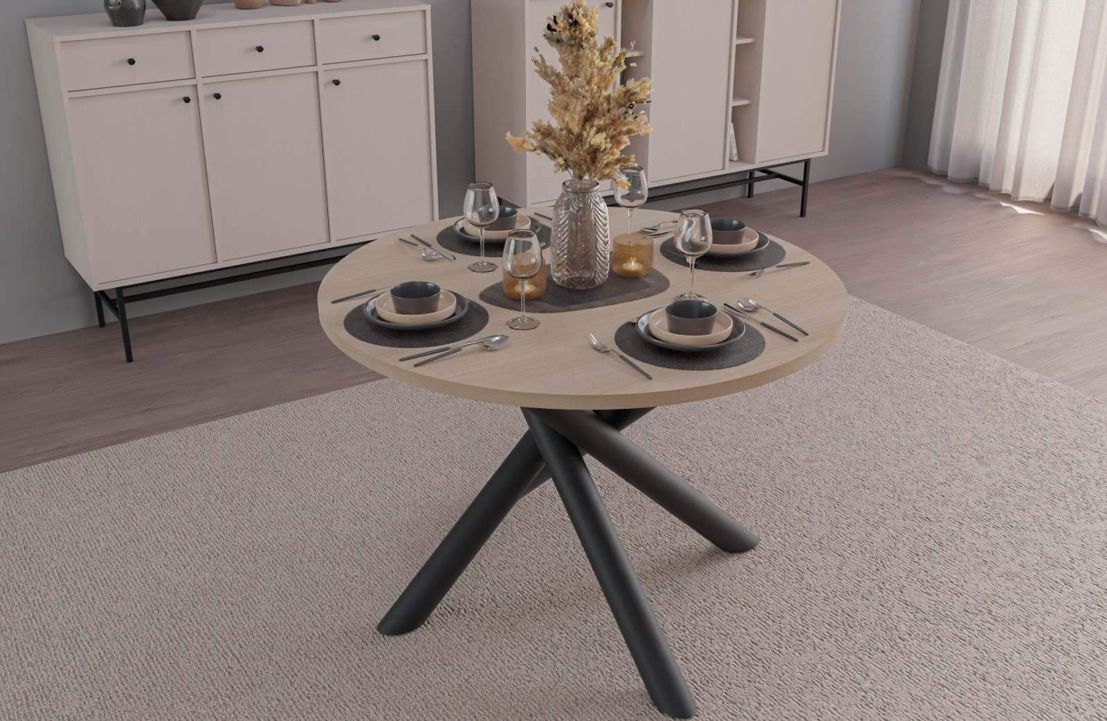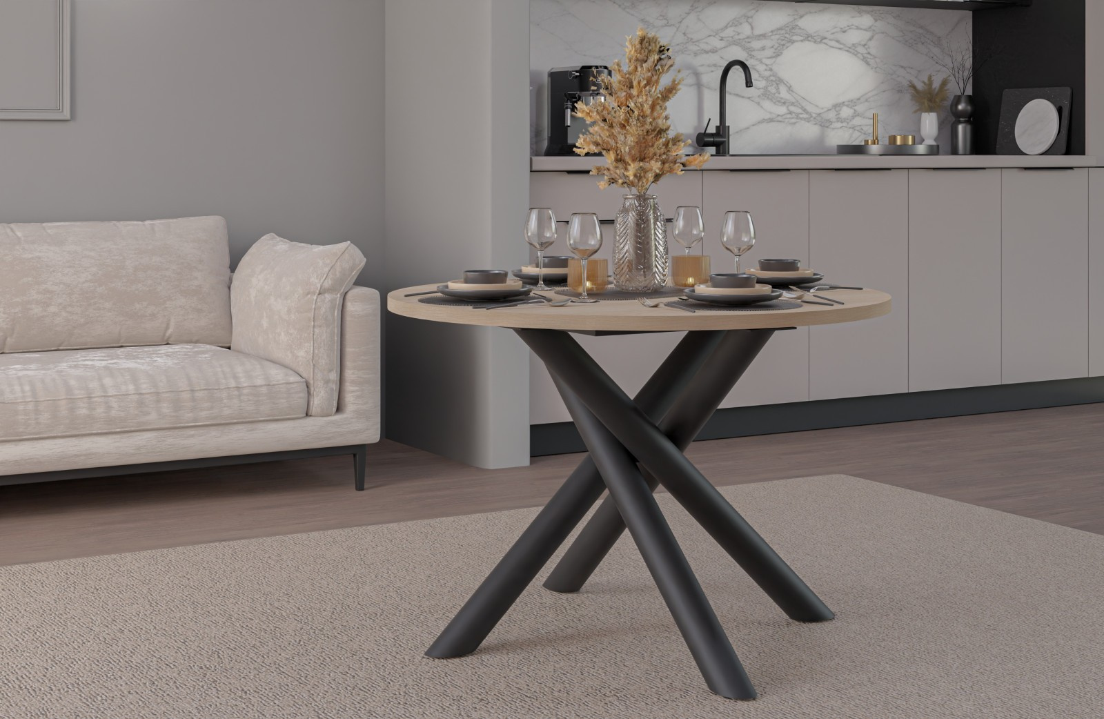 Jídelní stůl Osman je vyrobený v nadčasovém stylu, který se hodí do každé moderní domácnosti. Deska stolu je z lamina tl.15 mm, nohy jsou černé kovové ve stylu "pavouk". Stůl se skvěle hodí nejen do jídelny, ale i do kuchyně nebo do jídelního koutu v obývacím pokoji. Stůl je dodávaný v demontu. Součástí balení je montážní návod včetně všech spojovacích prvků.