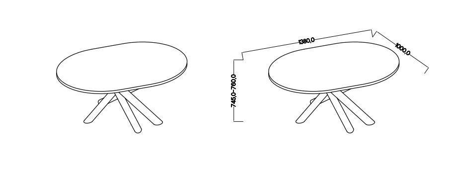 rozměry: ovál 138 x 100 cm, výška 75 cm