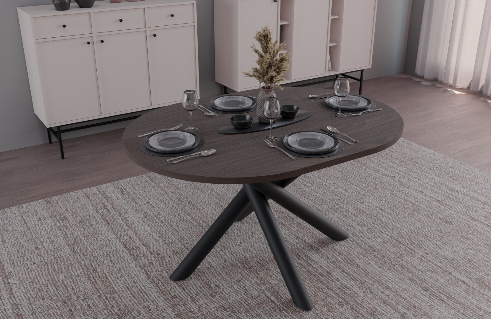 Jídelní stůl Osman je vyrobený v nadčasovém stylu, který se hodí do každé moderní domácnosti. Deska stolu je z lamina tl.15 mm, nohy jsou černé kovové ve stylu "pavouk". Stůl se skvěle hodí nejen do jídelny, ale i do kuchyně nebo do jídelního koutu v obývacím pokoji. Stůl je dodávaný v demontu. Součástí balení je montážní návod včetně všech spojovacích prvků.