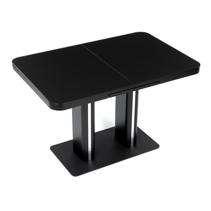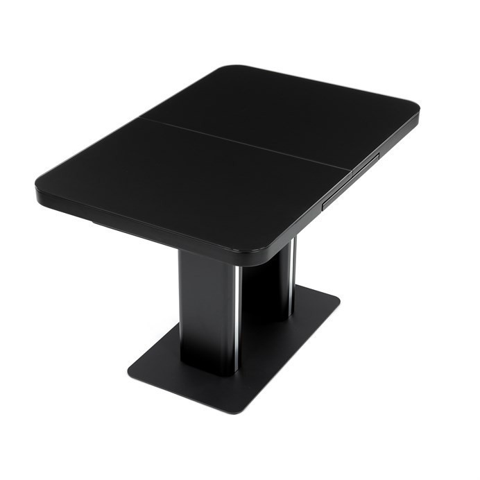 Jídelní rozkládací stůl HT-D1926 BK značky Autronic vyniká moderním designem s černou matnou povrchovou úpravou a praktickým automatickým rozkladem, který zvětšuje pracovní plochu z 120 na 160 cm. Deska stolu je vyrobena z tvrzeného černého skla, které zajišťuje vysokou odolnost proti poškrábání a snadnou údržbu, zatímco konstrukce nohou a rámu je z MDF materiálu s černým matným lakem, což přispívá k pevnosti a stabilitě celého stolu. Zaoblené rohy desky nejen zvyšují bezpečnost při používání, ale také dodávají elegantní vizuální dojem. Mechanismus rozkladu je navržen pro jednoduché a plynulé ovládání, což umožňuje rychlé přizpůsobení velikosti stolu podle potřeby. Stabilní podnož s dvojitými sloupky na podstavci zajišťuje rovnoměrné rozložení hmotnosti a vysokou nosnost, což činí stůl vhodným pro každodenní použití v domácnostech i menších kancelářských prostorách. Celková výška stolu je 75 cm, šířka 80 cm a délka v základním stavu 120 cm, která se po rozložení prodlouží o 40 cm.