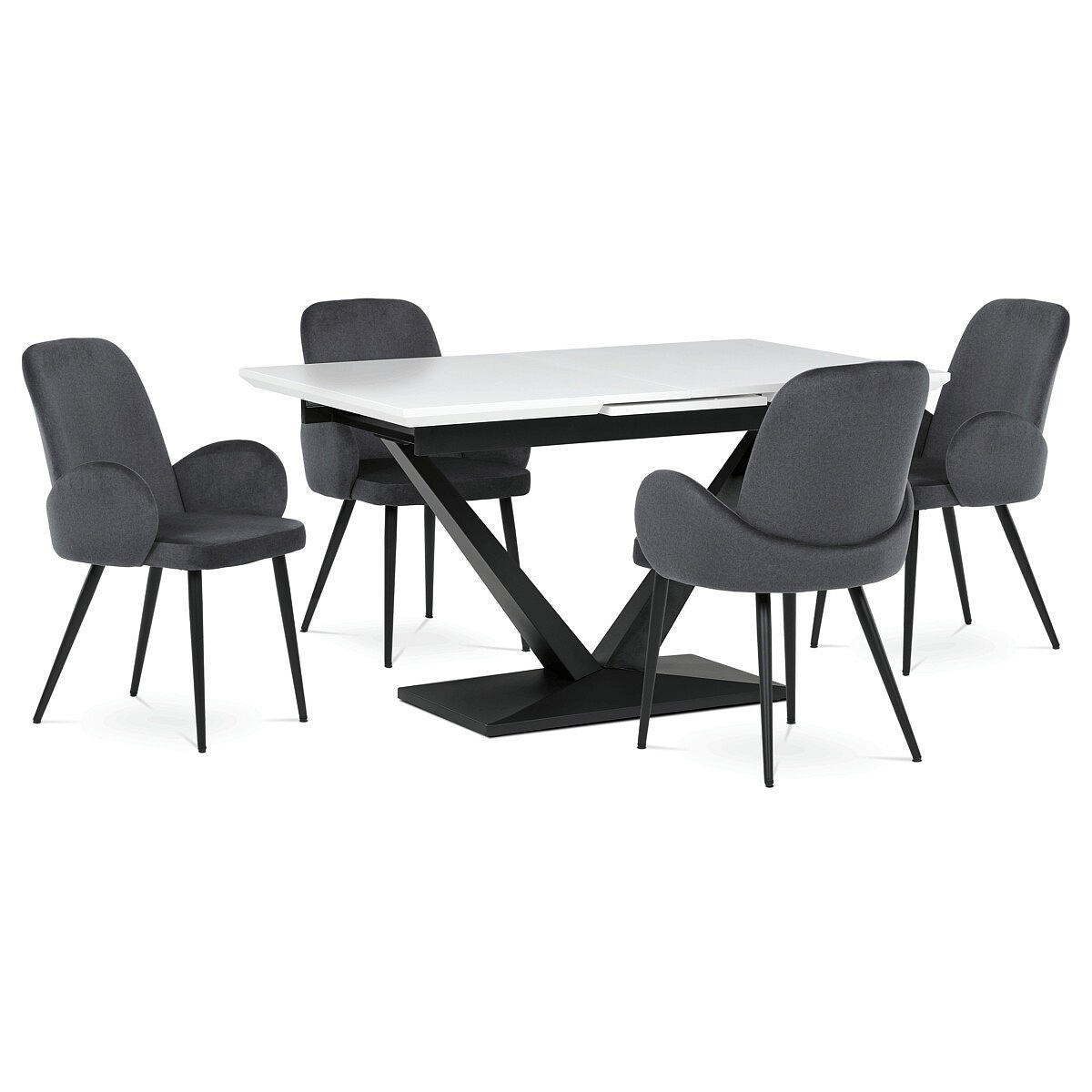 Rozkládací jídelní stůl značky Autronic vyniká svou robustní centrální nohou ve tvaru V. Bílá matná deska z MDF materiálu nabízí odolný a snadno udržovatelný povrch, ideální pro každodenní stolování. Díky rozkládacímu mechanismu snadno přizpůsobíte velikost stolu aktuálním potřebám, což je skvělé pro rodinná setkání nebo hosty.Tento stůl bude stylovým a funkčním doplňkem každé jídelny, který zaujme na první pohled.