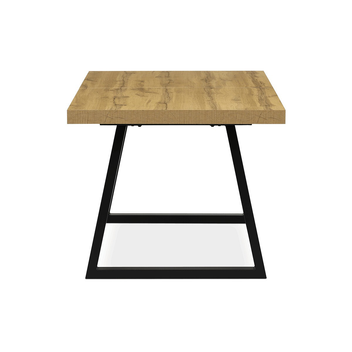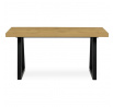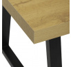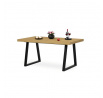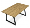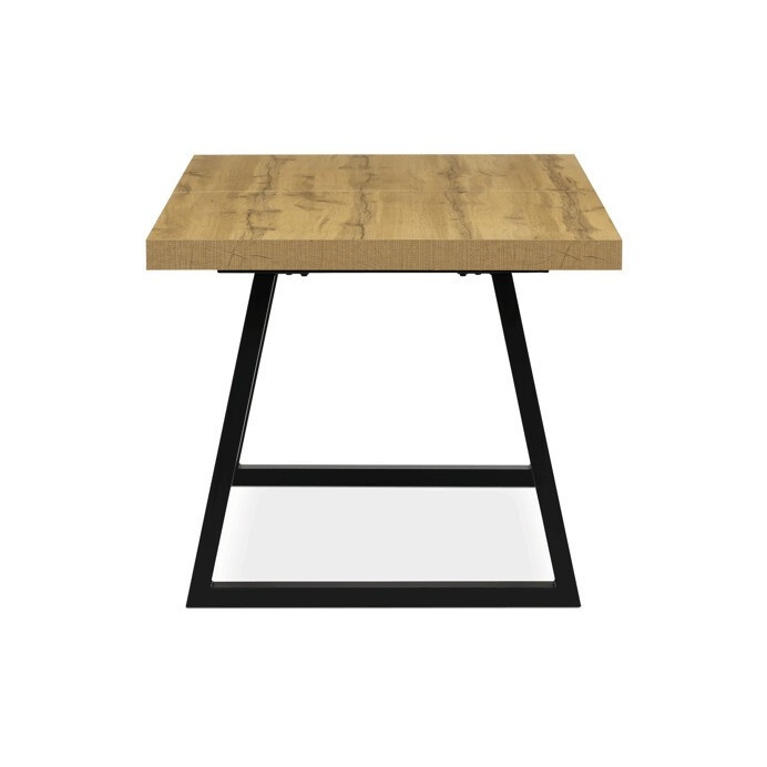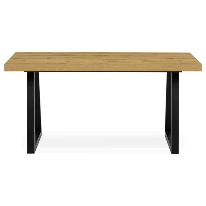 Jídelní stůl s rozkládací funkcí nabízí praktické řešení pro flexibilní uspořádání jídelního prostoru. Deska stolu je vyrobena z lamina s dubovým dekorem a matnou povrchovou úpravou, která je odolná proti poškrábání a snadno se udržuje. Hrany desky jsou opatřeny ABS lištou, která zvyšuje odolnost proti poškození a zároveň dodává stolu precizní vzhled. Stabilní kovová podnož v černé barvě zajišťuje pevnou oporu a stabilitu během používání. Rozměry 160x90 cm lze rozšířit o 80 cm, což umožňuje pohodlné usazení většího počtu osob. Výška stolu 76 cm odpovídá standardním ergonomickým parametrům pro jídelní nábytek.