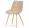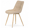 Designová skořepinová jídelní židle je čalouněna krémovou látkou s výrazným prošitím sedací části i části určené k opření. Sedací část je zaoblená a má vyvýšené boky, plynule přecházející do opěráku. Polstrování je z kvalitní PU pěny. Čtyřnohá kovová podnož je v 3D dekoru dub. Nohy jsou kruhového průřezu a kónické, ukončené černými platovými kluzáky. Celá podnož je svařená a dodávána jako celek, nehrozí tedy občasné dotahování šroubů jako u podnože šroubované.Toto vše působí nejen jako stylový designový prvek, ale dělá židli velmi pevnou, pohodlnou a praktickou na kratší i delší posezení. Svým provedením ve Skandinávském stylu a decentní barevností se židle hodí nejen k jídelnímu stolu, ale i jako součást pracoven či konferenčních místností.