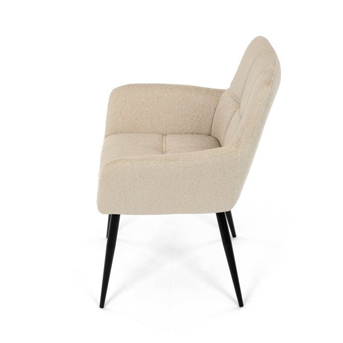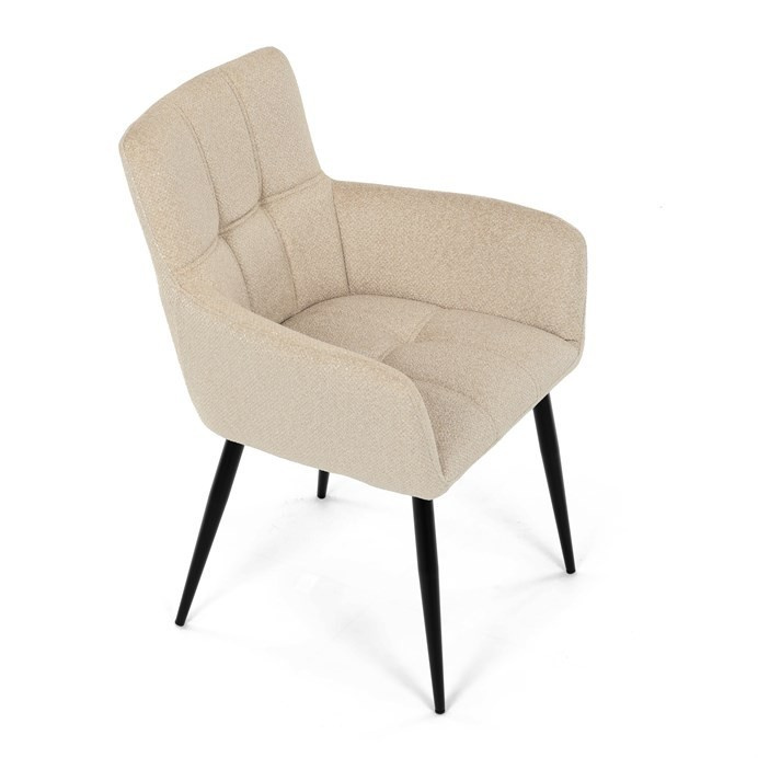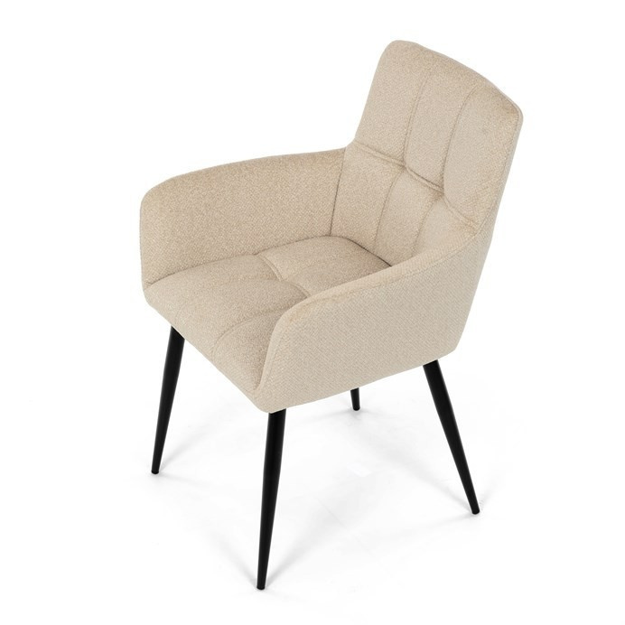 Elegantní krémová jídelní židle od značky Autronic skvěle doplní moderní i klasické interiéry. Tato stylová židle nabízí vysoký komfort díky čalounění z kvalitní látky a mekkému sedáku z PU pěny. Černé kovové nohy zajišťují stabilitu a dodávají židli jemný industriální nádech. Komfortní područky a ergonomické provedení oceníte při každém posezení. Židle se hodí nejen do domácí jídelny, ale i do restauračních prostor, kde vytvoří útulnou atmosféru.