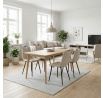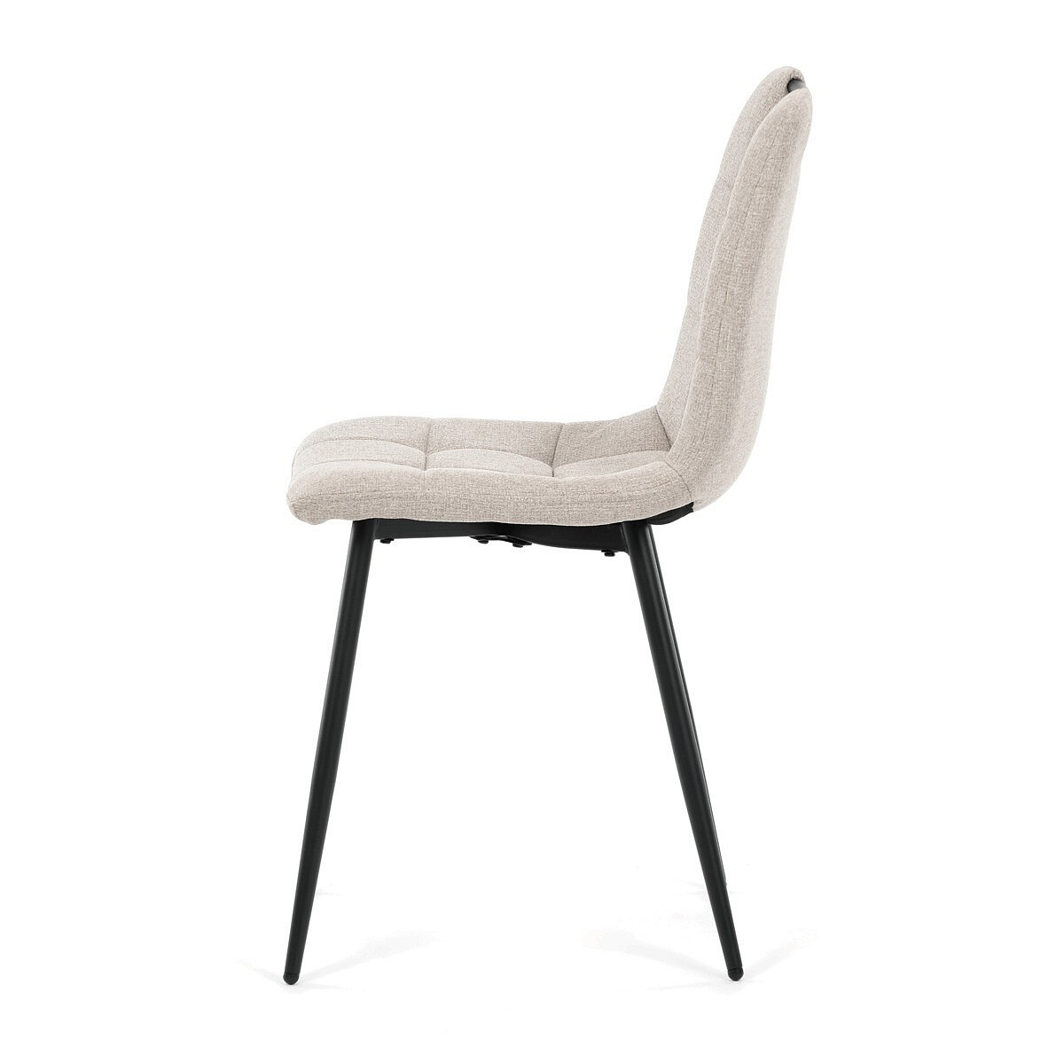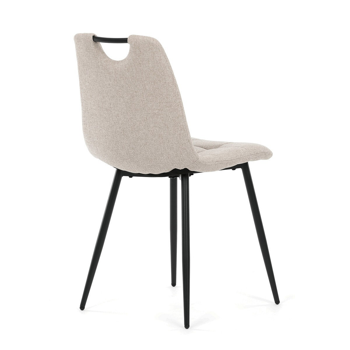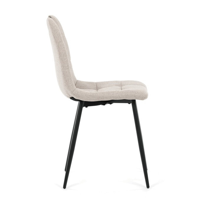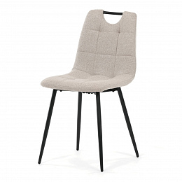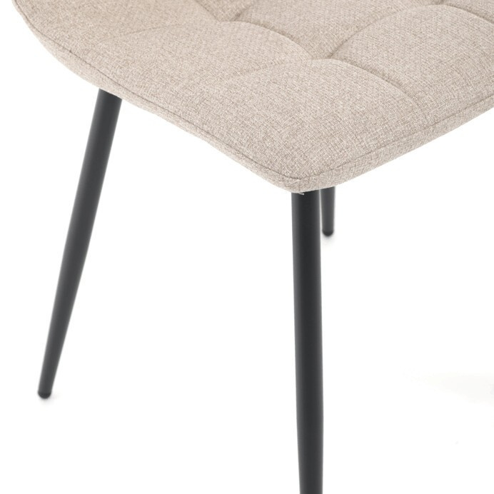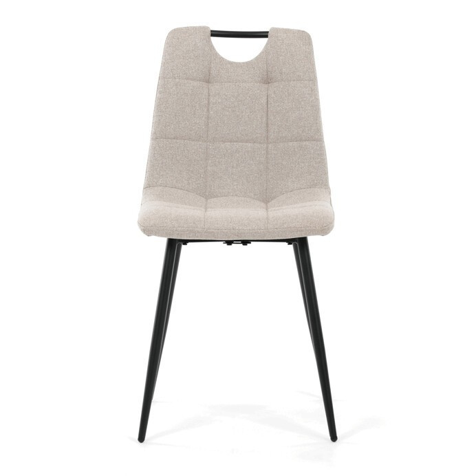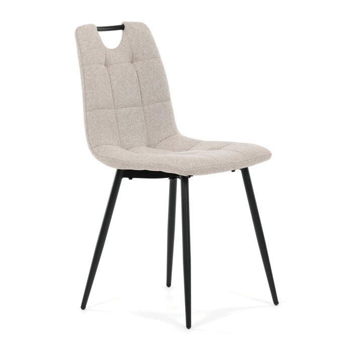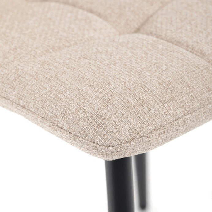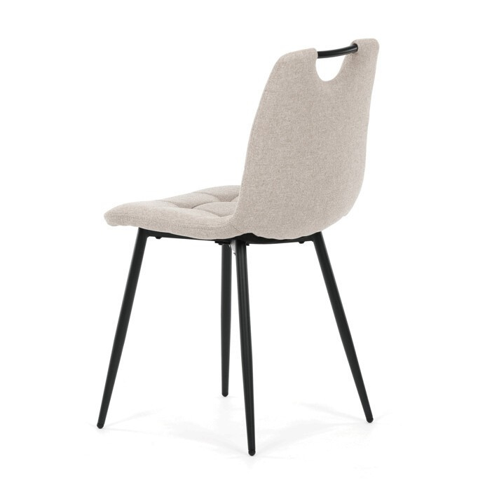 Jídelní židle s označením DCL-V2017 CRM2 nabízí kombinaci pohodlí a praktičnosti v moderním designu. Sedák a opěradlo jsou potažené béžovou látkou, která je snadno udržovatelná a doplněná designovým prošitím pro zvýraznění estetického dojmu. Pevné kovové nohy s matnou černou povrchovou úpravou zajišťují stabilitu a dlouhou životnost. Praktickým prvkem je madlo v horní části opěradla, které usnadňuje manipulaci a přenášení židle. Židle nemá područky ani otočný mechanismus, což ji činí kompaktní a vhodnou do různých interiérů.