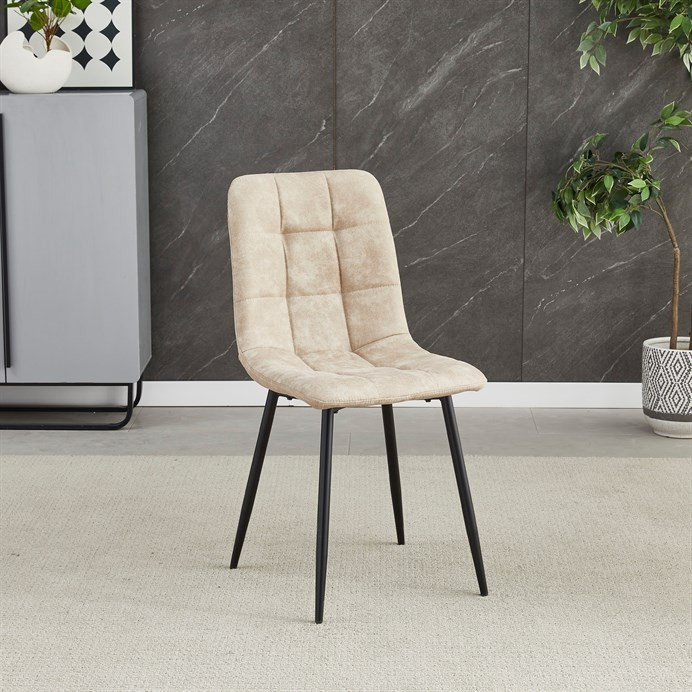 Jídelní židle značky Autronic v moderním industriálním stylu je skvělou volbou pro každou jídelnu. Potah z látky vintage v krémovém odstínu dodává nábytku osobitý charakter, zatímco elegantní čtvercové prošívání podtrhuje její vzhled. Černé kovové nohy poskytují stabilitu a ladí s minimalistickým designem. Komfort při sezení zajišťuje měkké polstrování z PU pěny, díky kterému je židle ideální jak pro každodenní používání, tak pro slavnostní chvíle.