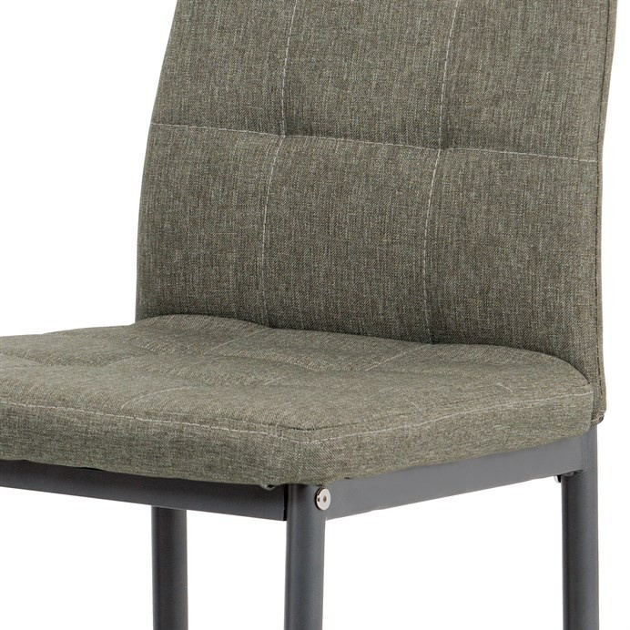 Jídelní židle v industriálním stylu a minimalistickém designu. Je potažena středně hrubou lanýžovou látkou s výrazným čtvercovým prošitím s čalounickými vtahy sedáku i opěráku. Polstrování je z kvalitní PU pěny. Čtyřnohá podnož je kovová, s povrchovou úpravou antracitovou matnou práškovou barvou. Nohy jsou kruhového průřezu a kónické, na koncích jsou opatřeny černými plastovými kluzáky, které minimalizují nebezpečí poškození povrchu podlahy na minimum. Nosnost židle je až 110 kg. Tato židle najde platné využití v prostorách domácí jídelny či kuchyně.