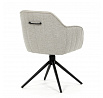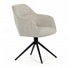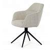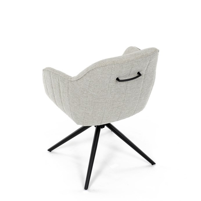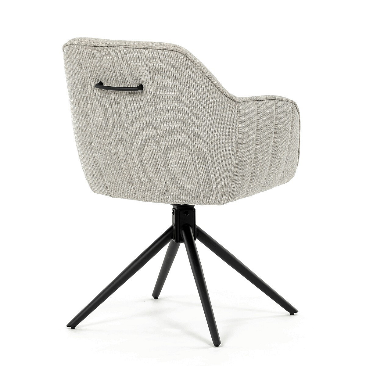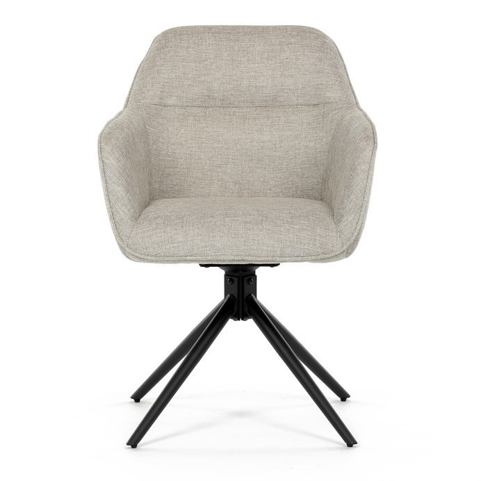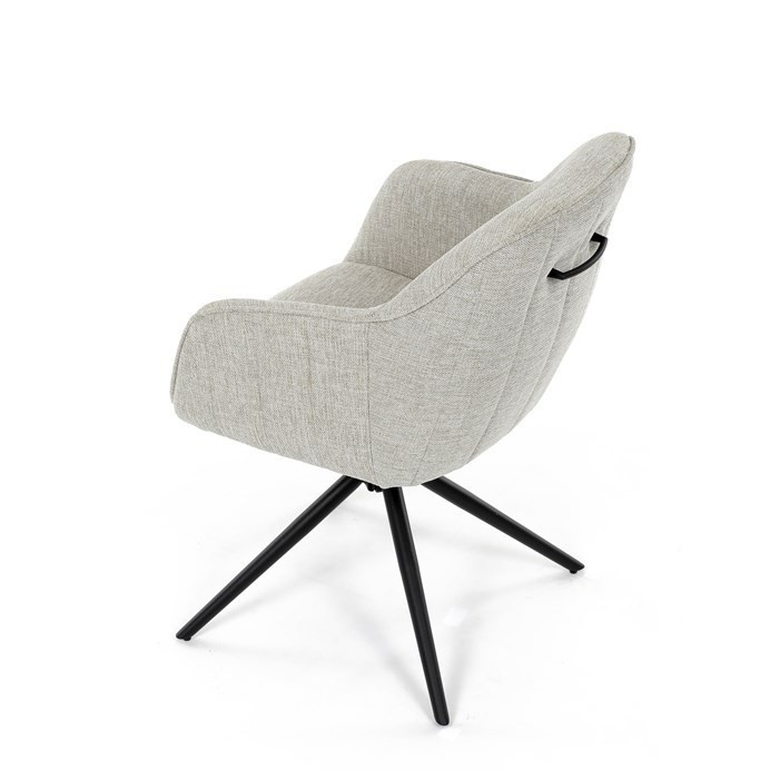 Moderní jídelní židle v krémové barvě s efektním prošitím zádové i přední části opěráku. Prošití je v brvě potahového materiálu. Zadní část opěráku je opatřena vkusným madlem pro snazší manipulaci. Čtyři kovové nohy v matném práškovém nástřiku vycházejí z centrálního bodu ve středu sedáku. Sedák je otočný o P90°+ L 90° s vratným mechanismem - funkce reset.