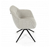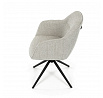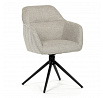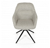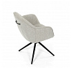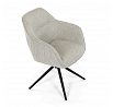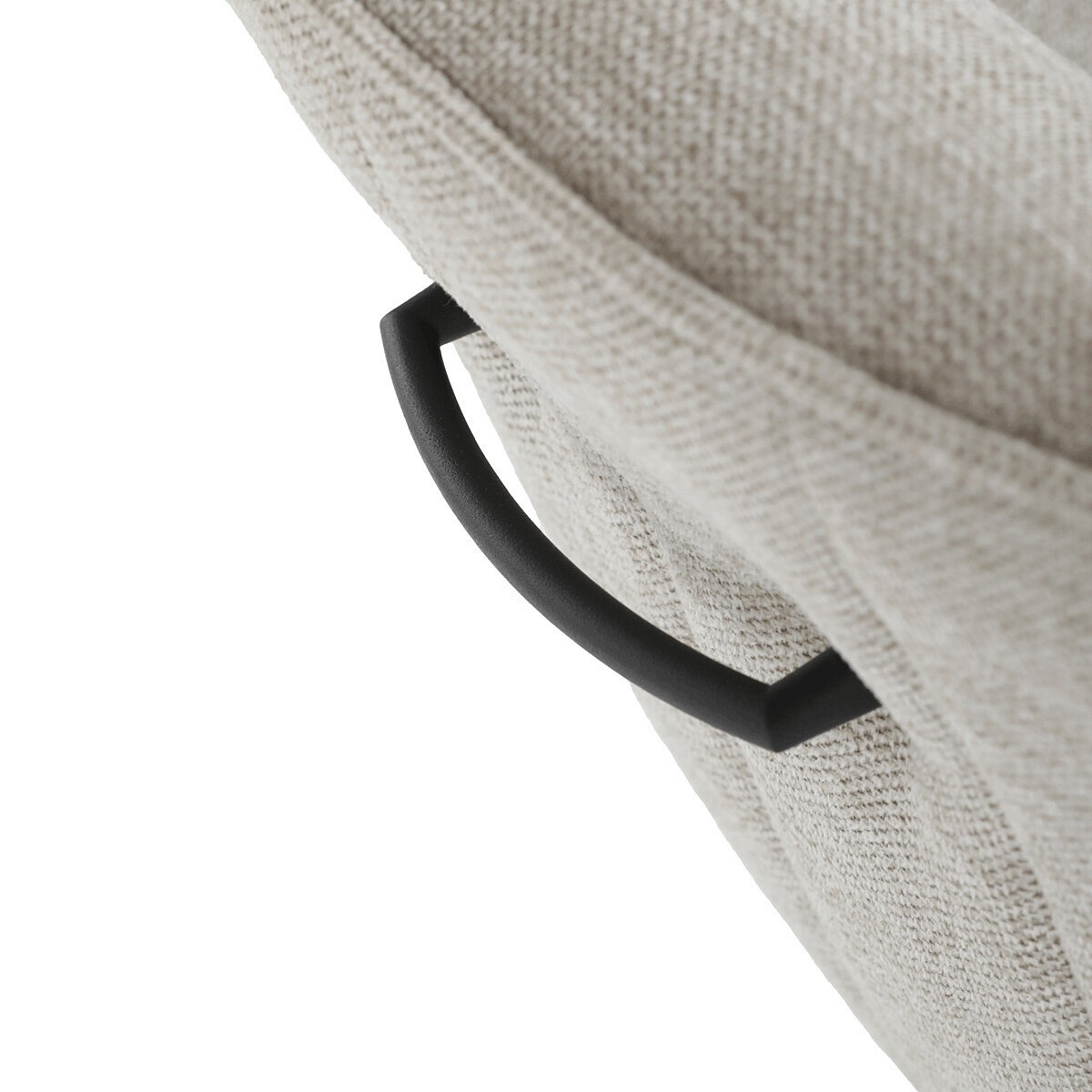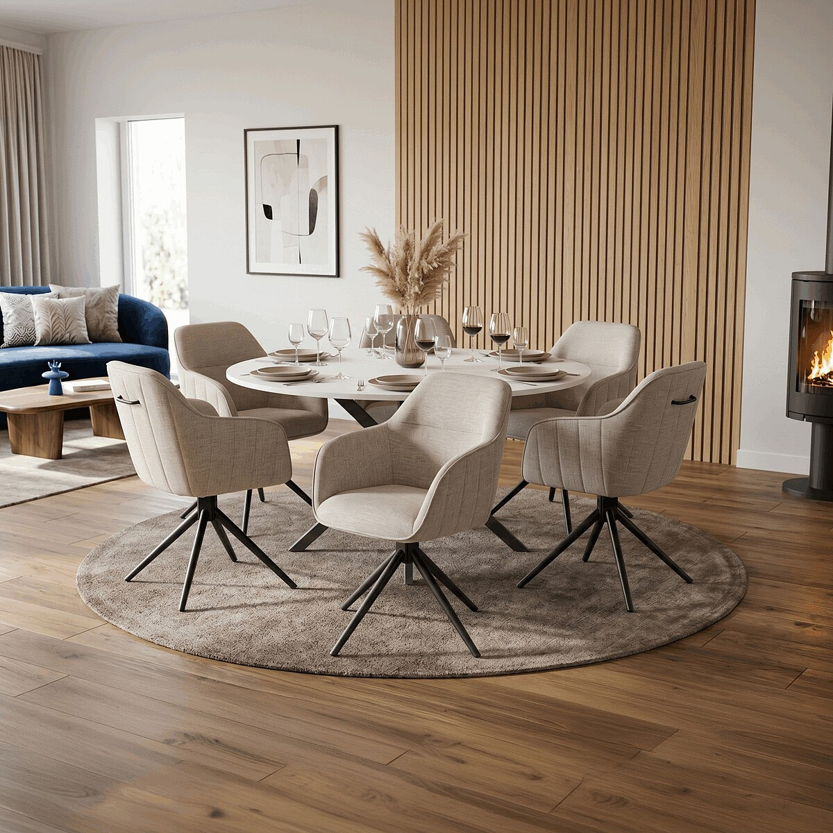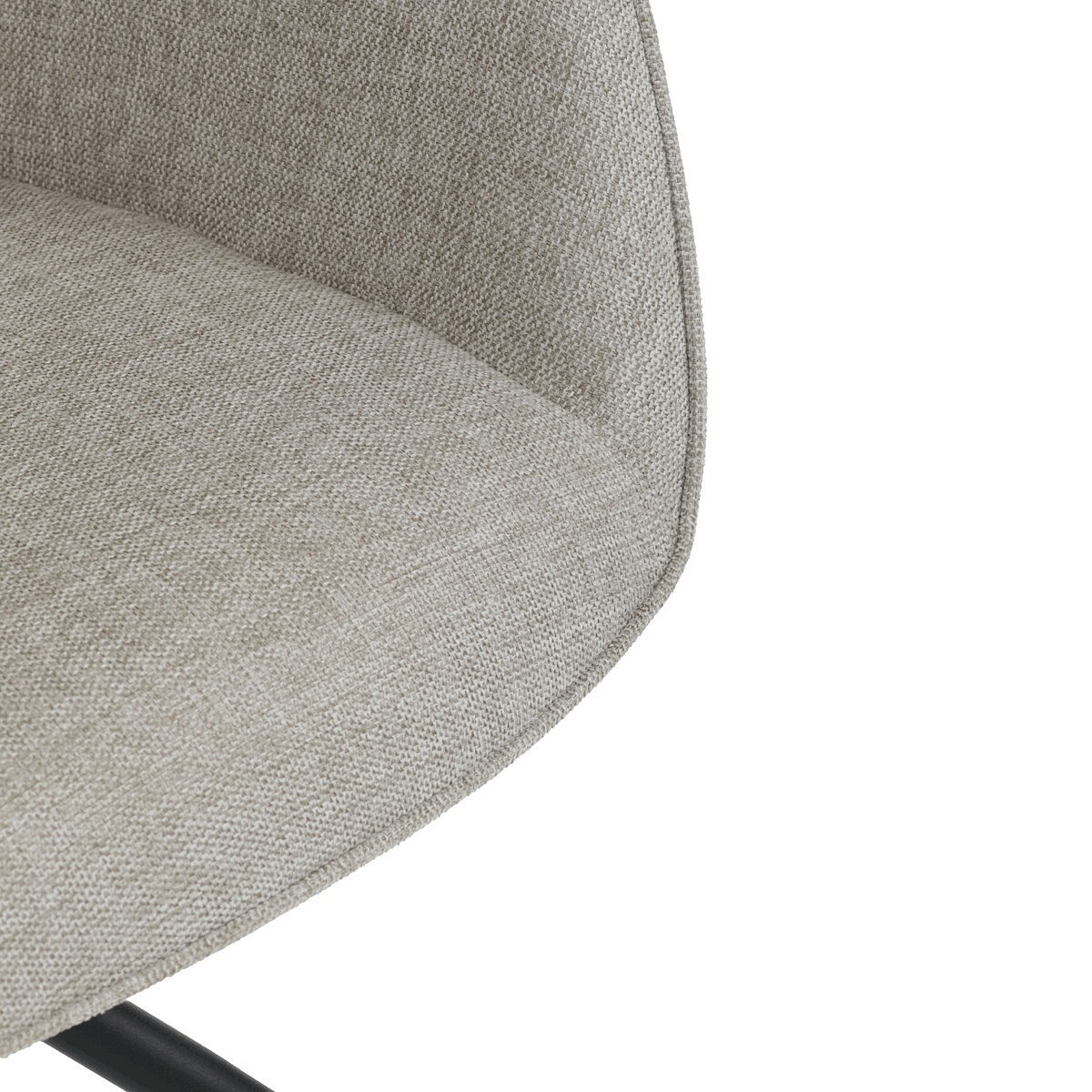 Moderní jídelní židle v krémové barvě s efektním prošitím zádové i přední části opěráku. Prošití je v brvě potahového materiálu. Zadní část opěráku je opatřena vkusným madlem pro snazší manipulaci. Čtyři kovové nohy v matném práškovém nástřiku vycházejí z centrálního bodu ve středu sedáku. Sedák je otočný o P90°+ L 90° s vratným mechanismem - funkce reset.