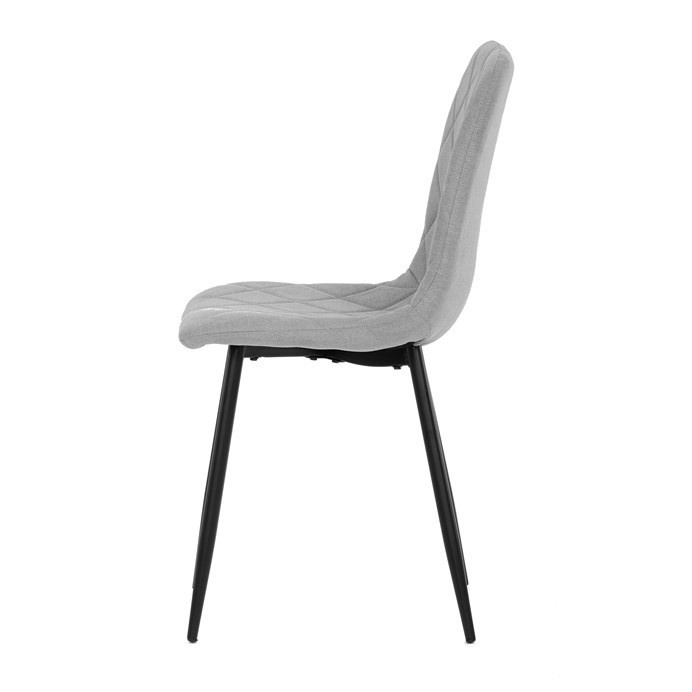 Moderní, stylová a pohodlná – to jsou hlavní atributy této šedé jídelní židle s látkovým potahem a černými kovovými nohami.Tato elegantní jídelní židle je ideální volbou pro moderní interiéry. Maximální komfort je dosažen polstrováním sedáku i zádové opěrky. Čalounění z vysoce kvalitní hladké tkaniny zajistí skvělý komfort při jídle nebo dlouhých večerech s přáteli a rodinou. Díky nohám vyrobeným z kovu je zajištěna zvýšená stabilita a odolnost proti opotřebení. Matná barva v kombinaci s hladkou látkou vytváří vkusný a moderní vzhled. Nosnost činí 120 kg.
