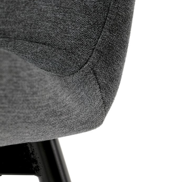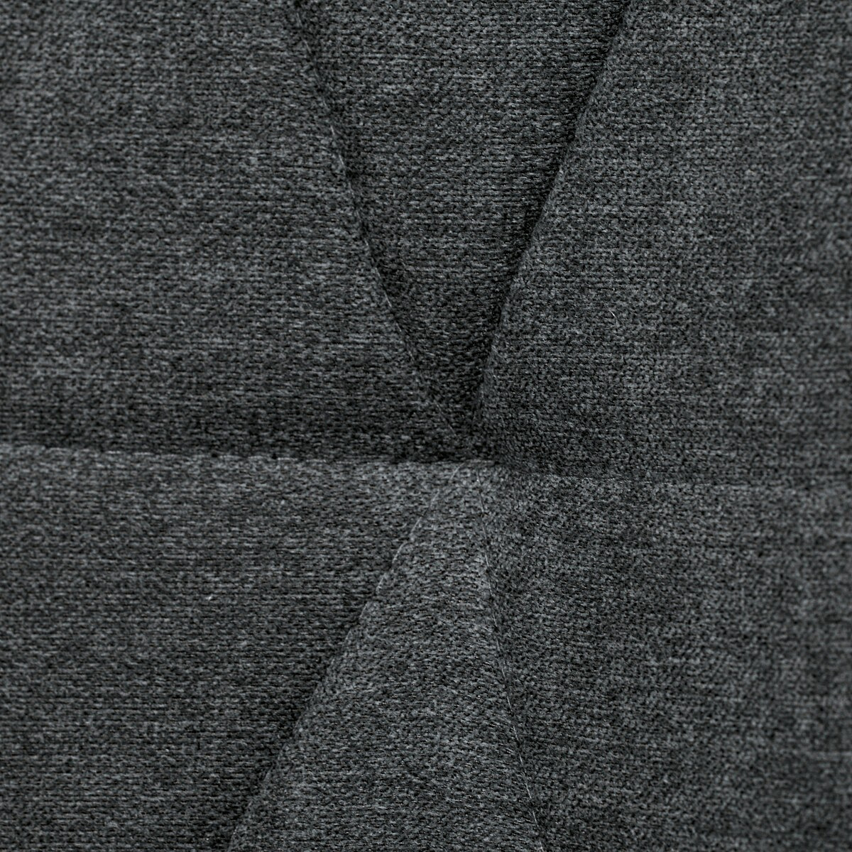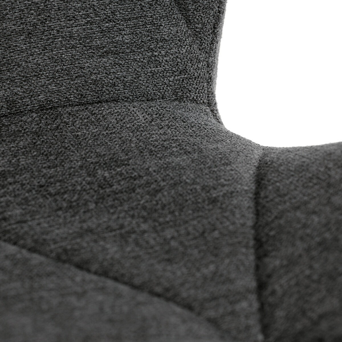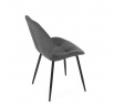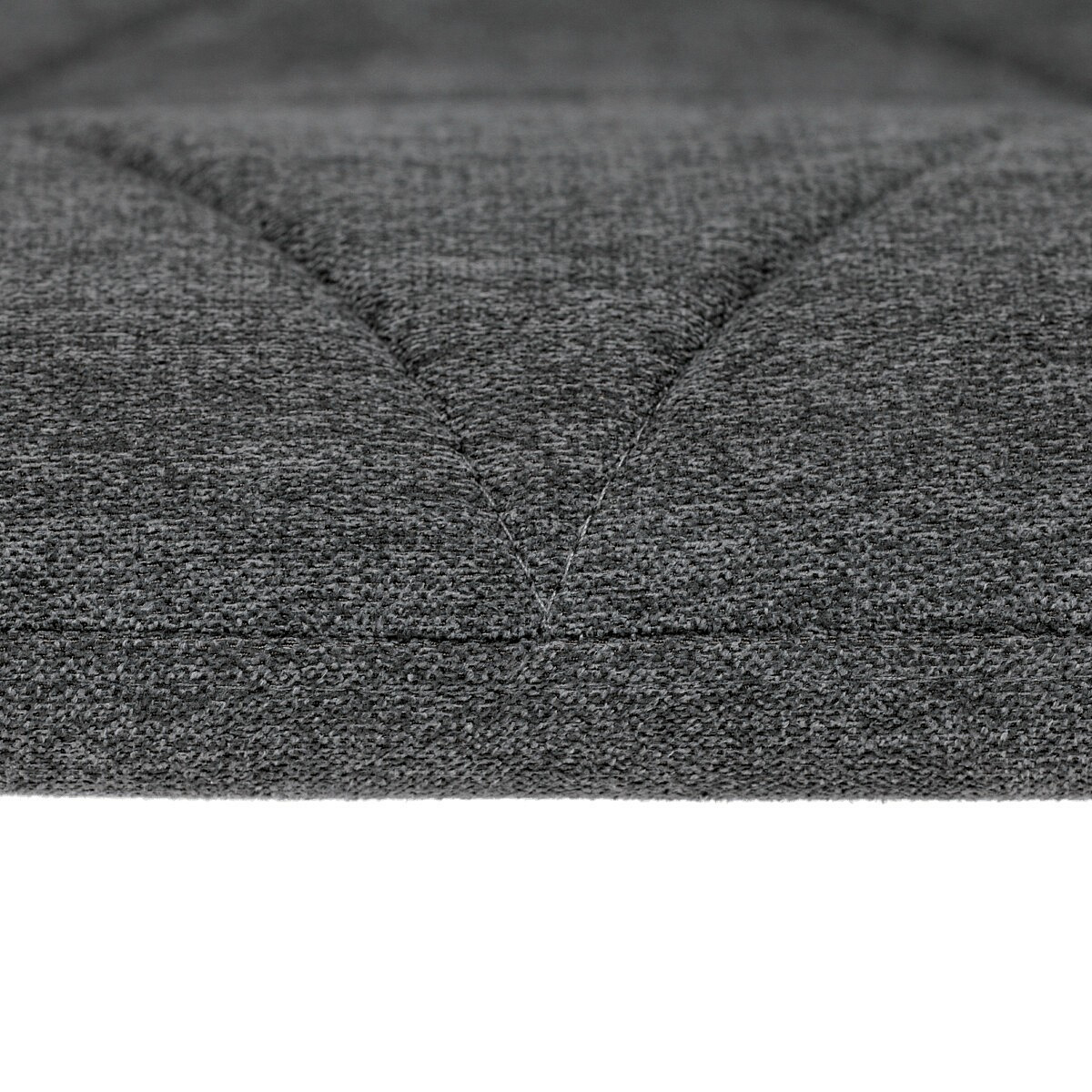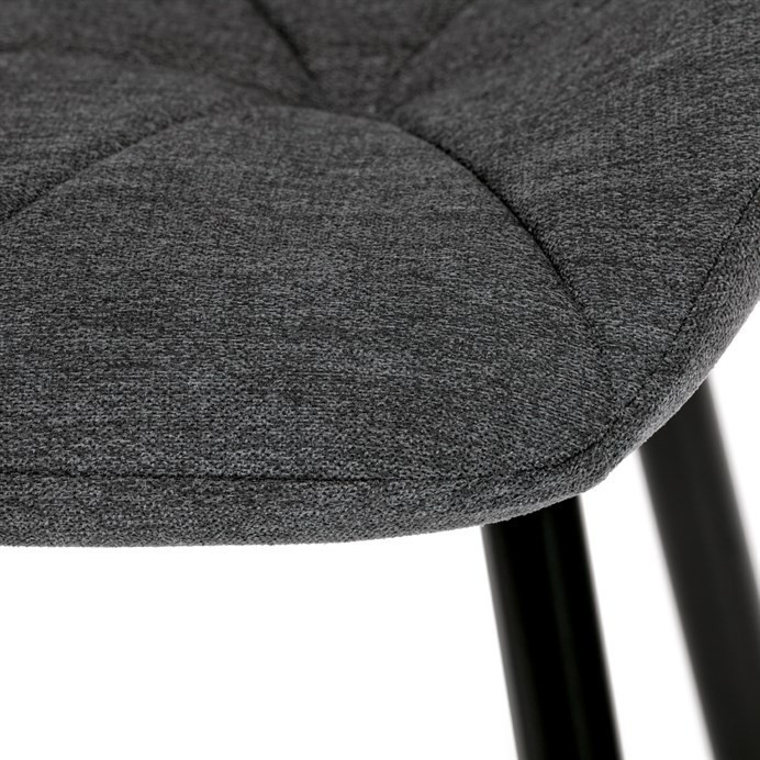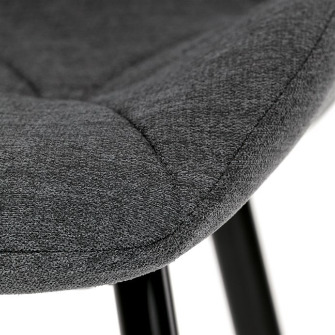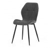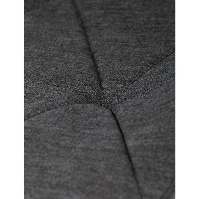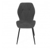 Židle je čalouněná kvalitní tmavě šedou látkou, která je měkká na dotek a zároveň odolná proti opotřebení. Ergonomicky tvarované sedadlo a opěradlo s dekorativním prošíváním poskytují vysoký komfort i při delším sezení. Židle stojí na pevných kovových nohách v černém provedení, které zajišťují stabilitu a dlouhou životnost. Nohy jsou elegantně zkosené, což dodává židli moderní vzhled a zajišťuje pevnou stabilitu.