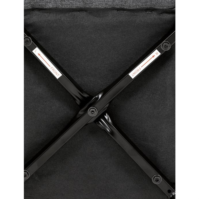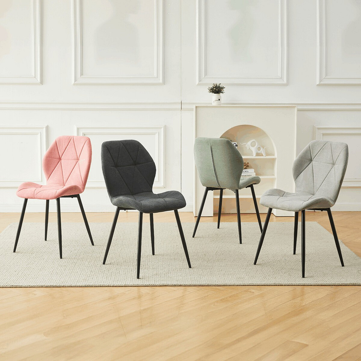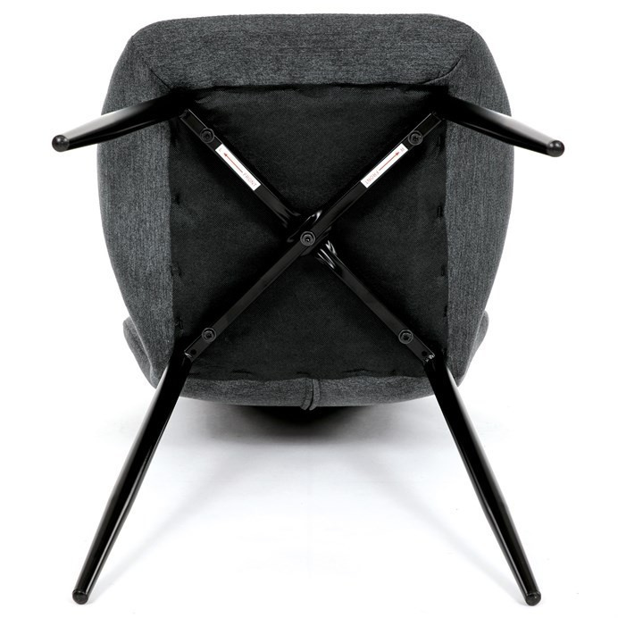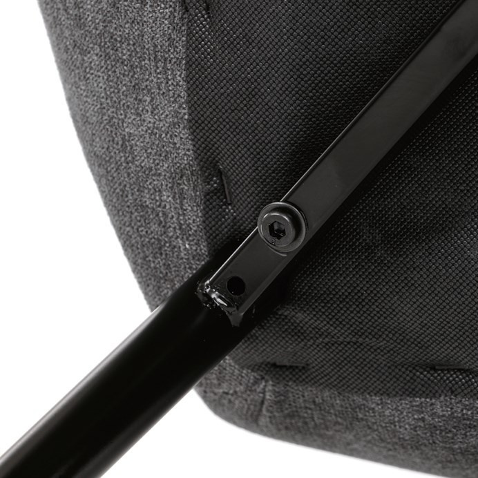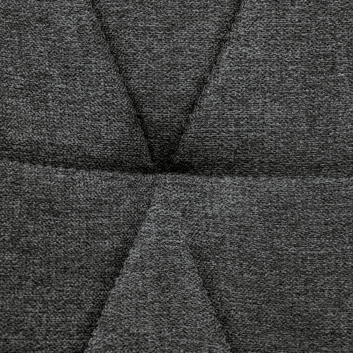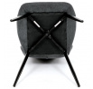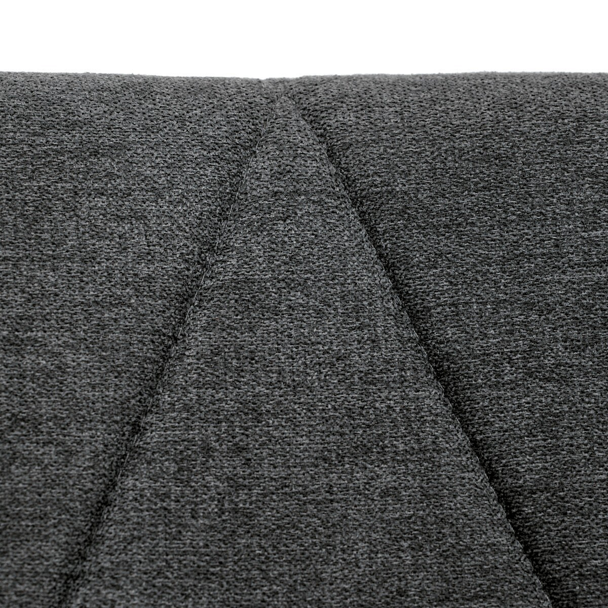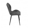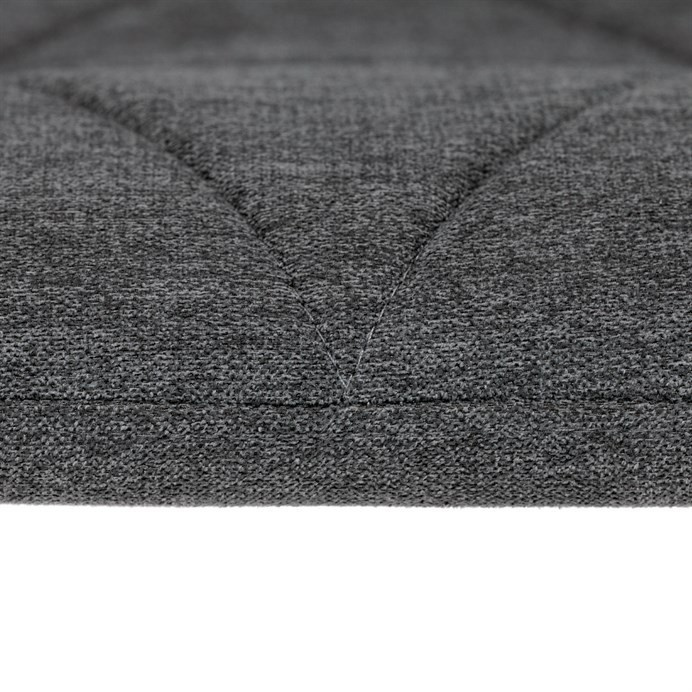 Židle je čalouněná kvalitní tmavě šedou látkou, která je měkká na dotek a zároveň odolná proti opotřebení. Ergonomicky tvarované sedadlo a opěradlo s dekorativním prošíváním poskytují vysoký komfort i při delším sezení. Židle stojí na pevných kovových nohách v černém provedení, které zajišťují stabilitu a dlouhou životnost. Nohy jsou elegantně zkosené, což dodává židli moderní vzhled a zajišťuje pevnou stabilitu.