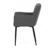 Moderní jídelní židle značky Autronic nabízí elegantní vzhled a vysoký komfort. Šedé čalounění z látky, která se snadno čistí, je ideální pro každodenní používání a zajišťuje praktickou údržbu. Pohodlné područky a měkká PU pěna ve výplni poskytují příjemné sezení. Stabilní konstrukce s černými kovovými nohami působí stylově a zajišťuje pevnost. Tato židle je skvělou volbou pro váš jídelní prostor, kde díky svému jednoduchému a funkčnímu designu perfektně zapadne do jakéhokoliv interiéru.