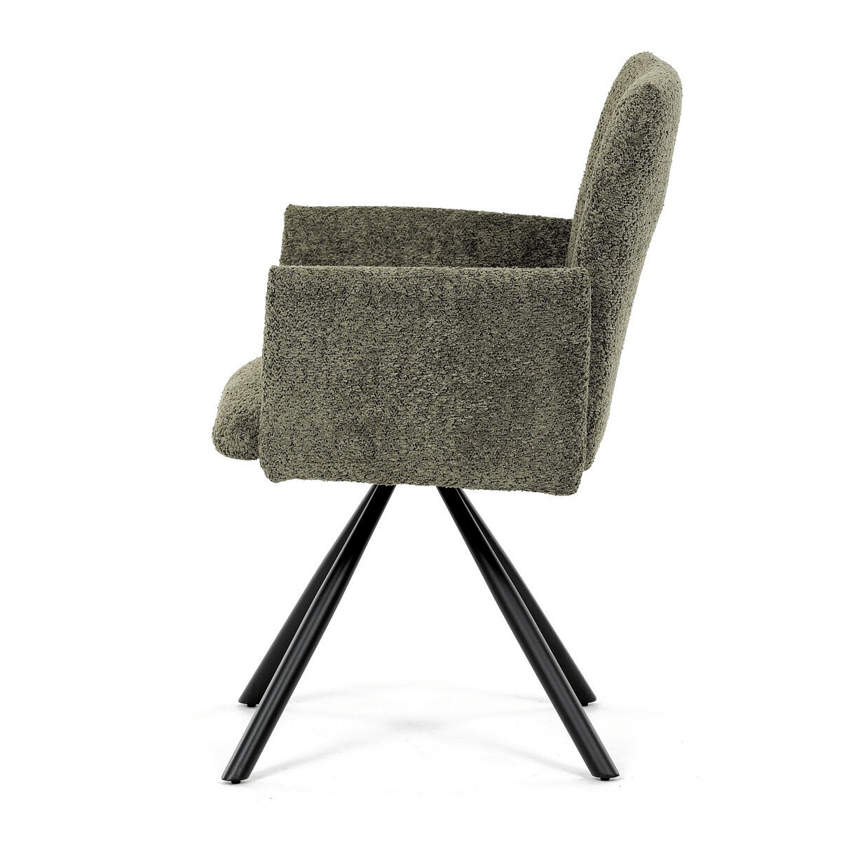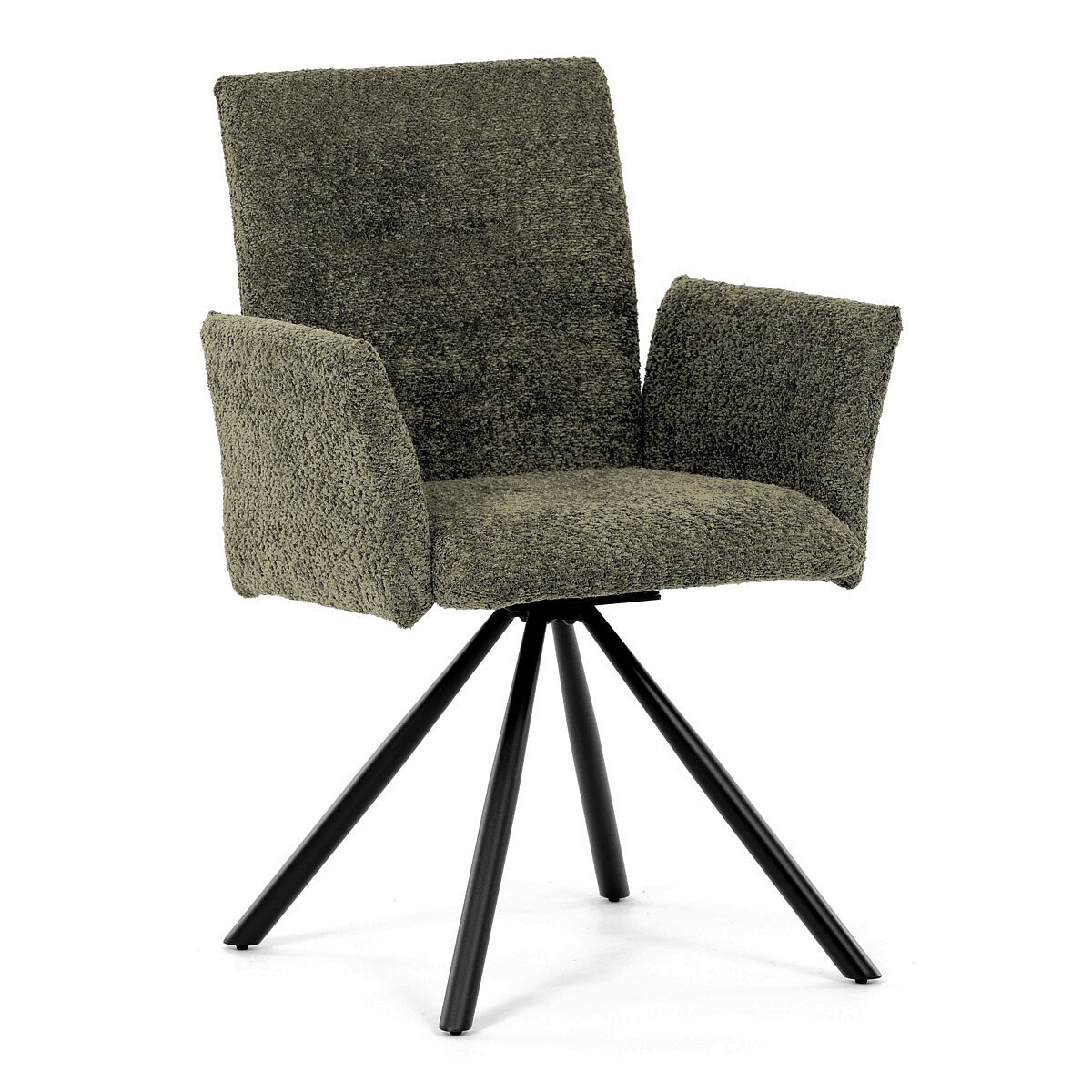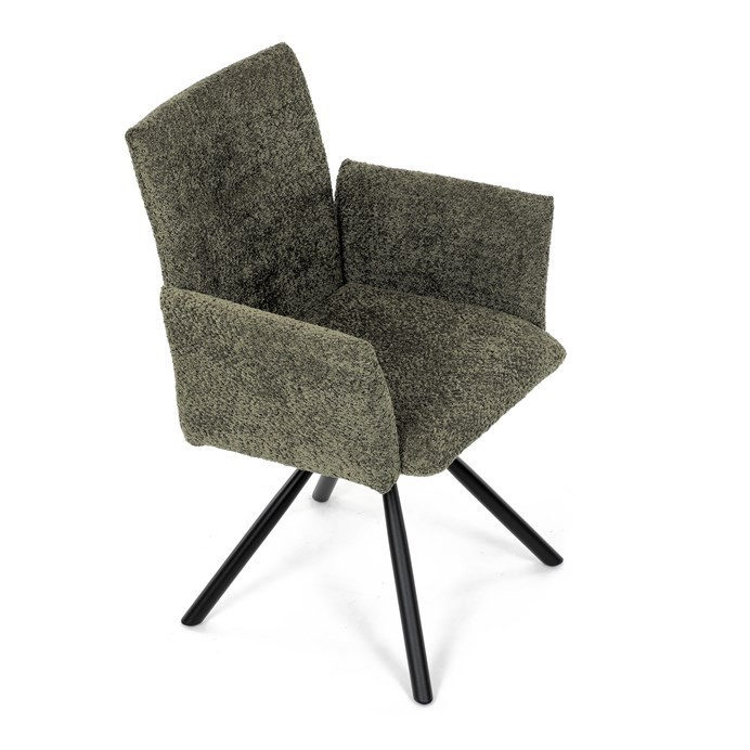 Tato moderní jídelní židle značky Autronic v industriálním stylu kombinuje pohodlí s funkčností. Otočná židle s robustní kovovou podnoží je vybavena pohodlnými područkami a látkou Bouclé, která zajišťuje příjemný a stylový vzhled. Polstrování z PU pěny nabízí měkké sezení, zatímco otočný mechanismus L90°/P90° s funkcí automatického vracení sedáku do základní polohy umožňuje snadné otáčení pro maximální flexibilitu. Černá kovová centrální podnož dodává židli stabilitu a moderní vzhled. Tato židle je ideální pro elegantní jídelny, kde se kombinuje komfort s moderním designem.