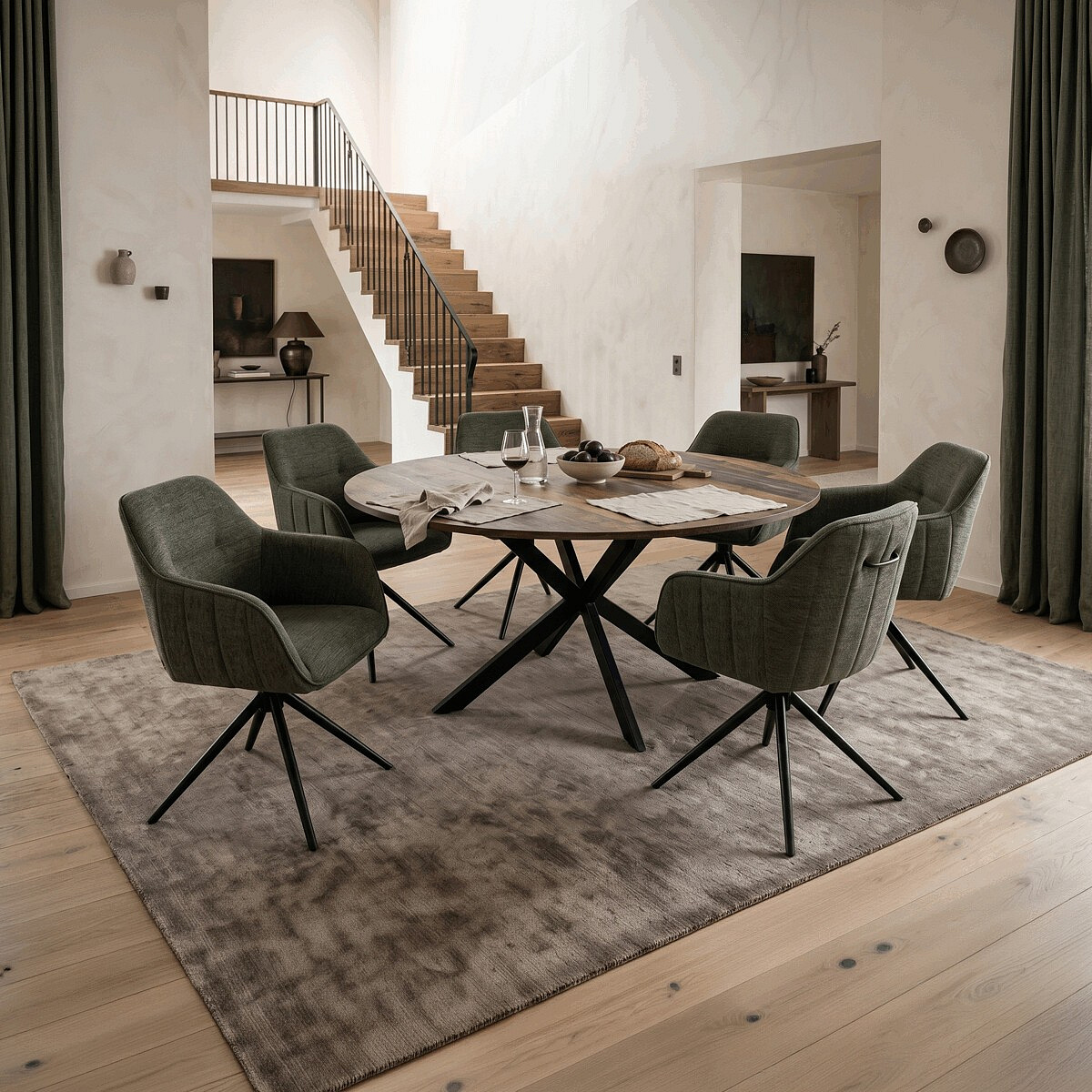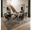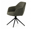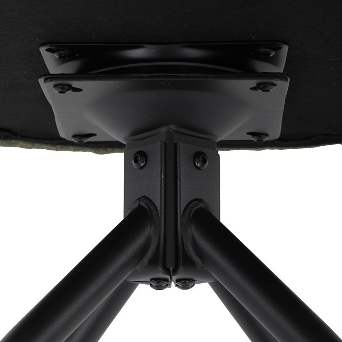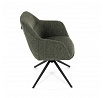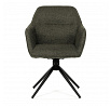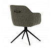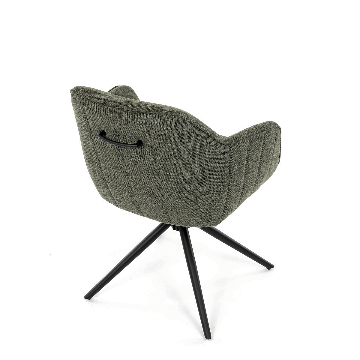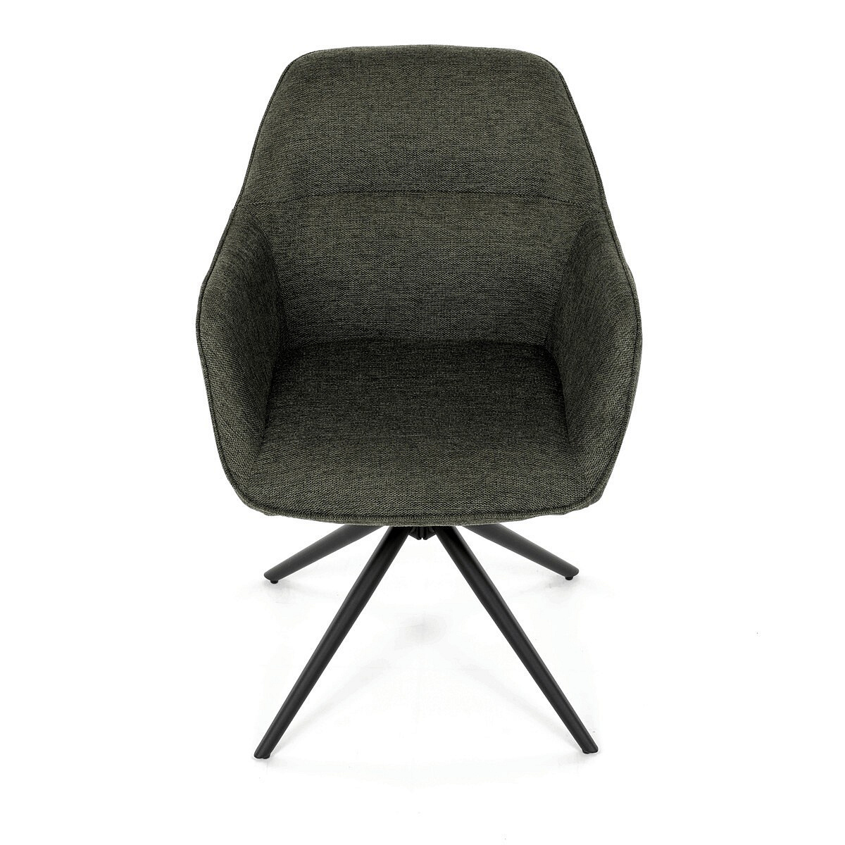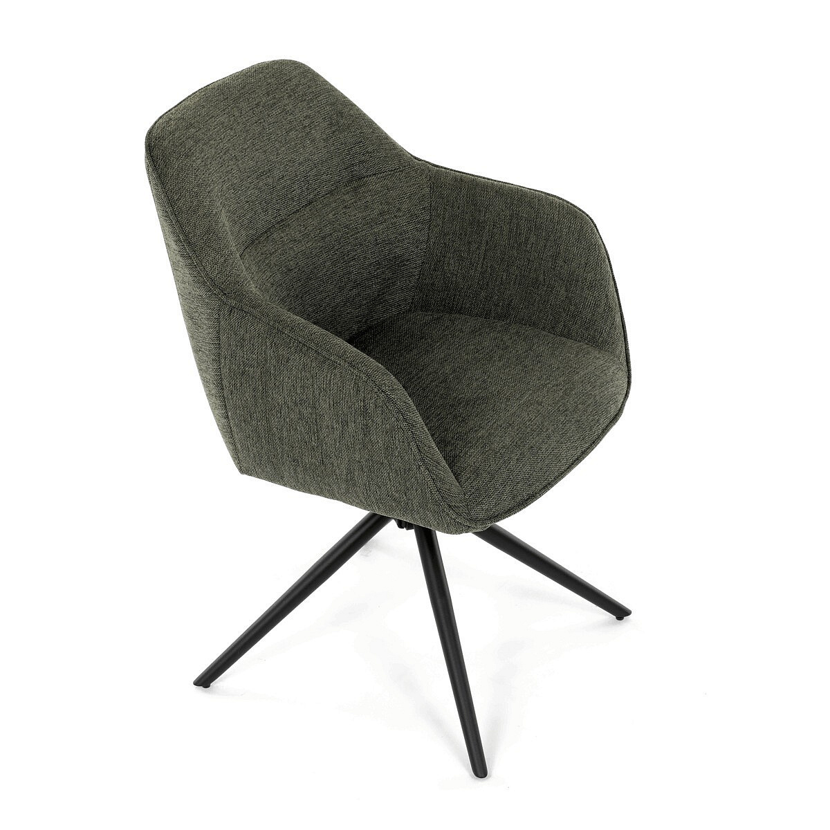 Moderní jídelní židle v zelené barvě s efektním prošitím zádové i přední části opěráku. Prošití je v brvě potahového materiálu. Zadní část opěráku je opatřena vkusným madlem pro snazší manipulaci. Čtyři kovové nohy v matném práškovém nástřiku vycházejí z centrálního bodu ve středu sedáku. Sedák je otočný o P90°+ L 90° s vratným mechanismem - funkce reset.
