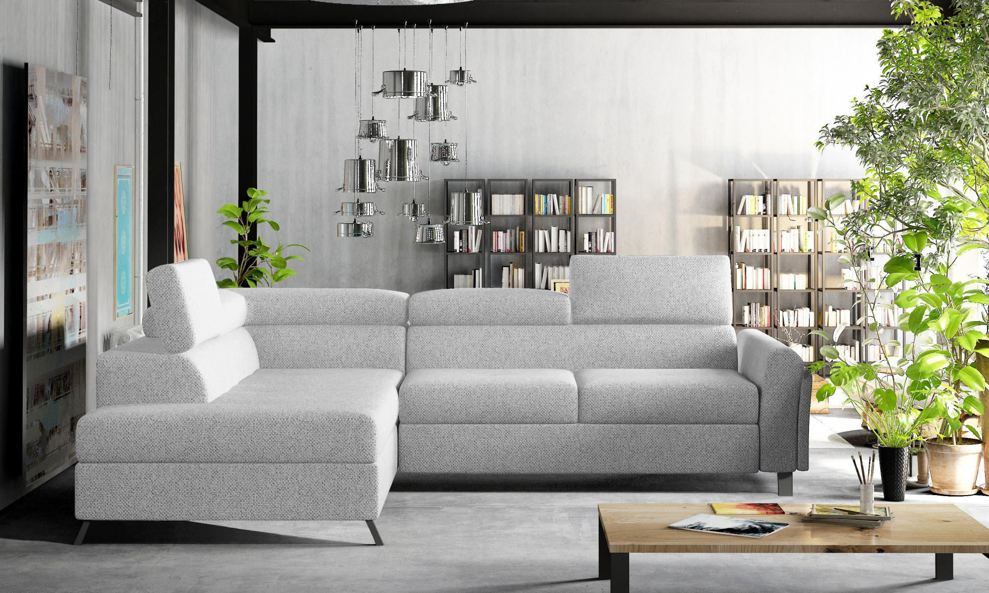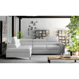 Kairos is a classic yet comfortable and chic L-shaped corner sofa, measuring 265 x 197 x 95 cm. Its distinguishing features include: stable construction, subdued appearance, upholstered back, contoured backrest and armrest, movable headrests and deep, soft seat made of innovative T30 and HR foam, which are resistant to deformation and damage. They also guarantee proper body alignment while resting. Kairos corner sofa is a multifunctional piece of furniture, as it provides the maximum level of comfort not only during the day, but also at night. After unfolding the sofa using the intuitive and uncomplicated dolphin mechanism, we get a sleeping surface of 125 x 190cm and a capacious, deep bedding compartment located in the ottoman. If you are looking for a functional, yet classic and elegant piece of furniture - the choice is simple - the Kairos corner sofa will be the answer to all your requirements and expectations.
