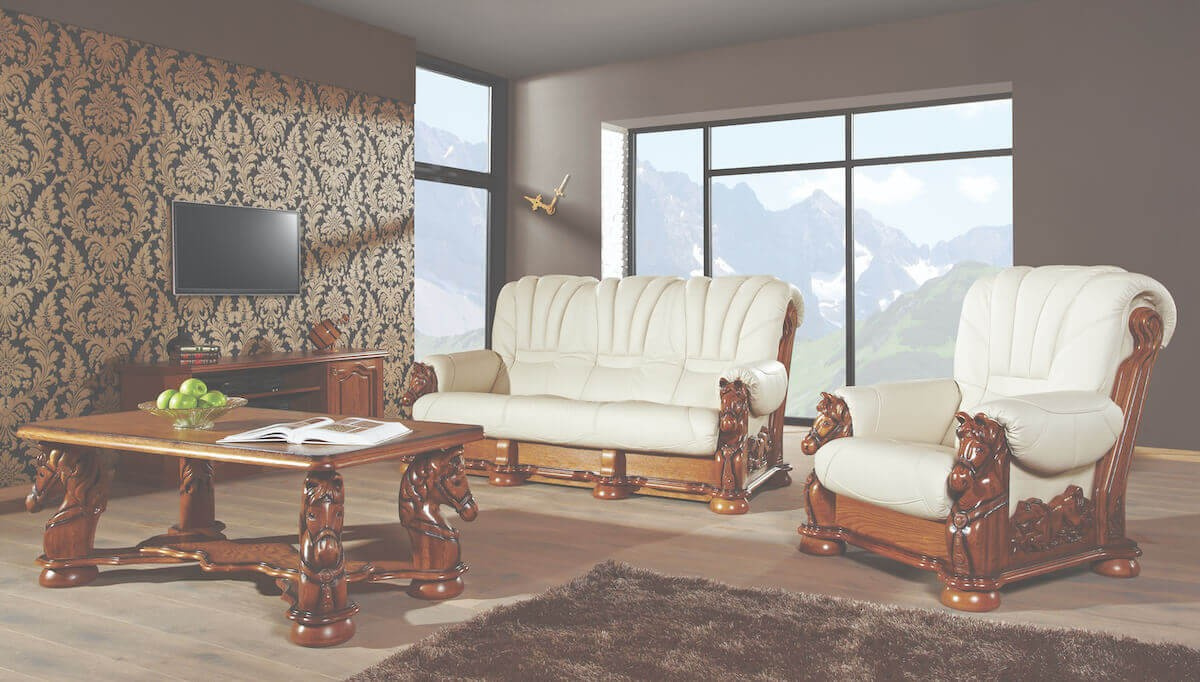 Kanapa Mustang jest idealnym rozwiązaniem dla najbardziej wymagających klientów, którzy nie boją się odważnych rozwiązań i szukają niepowtarzalnych mebli do swojego wnętrza. Niepowtarzalne piękno i klasyczna elegancja połączona z ręcznie rzeźbionymi końmi. \n \n \n \nSpecyfikacja: \n \n- Sprężyna bonelowa, \n- Pianka wysokosprężysta HR, \n- Stelaż drewniany, \n- Istnieje możliwość wykonania opcji narożnika. \n \n* meble wykonywane pod indywidualne zamówienie - termin realizacji zamówienia od 3 do 6 tygodni