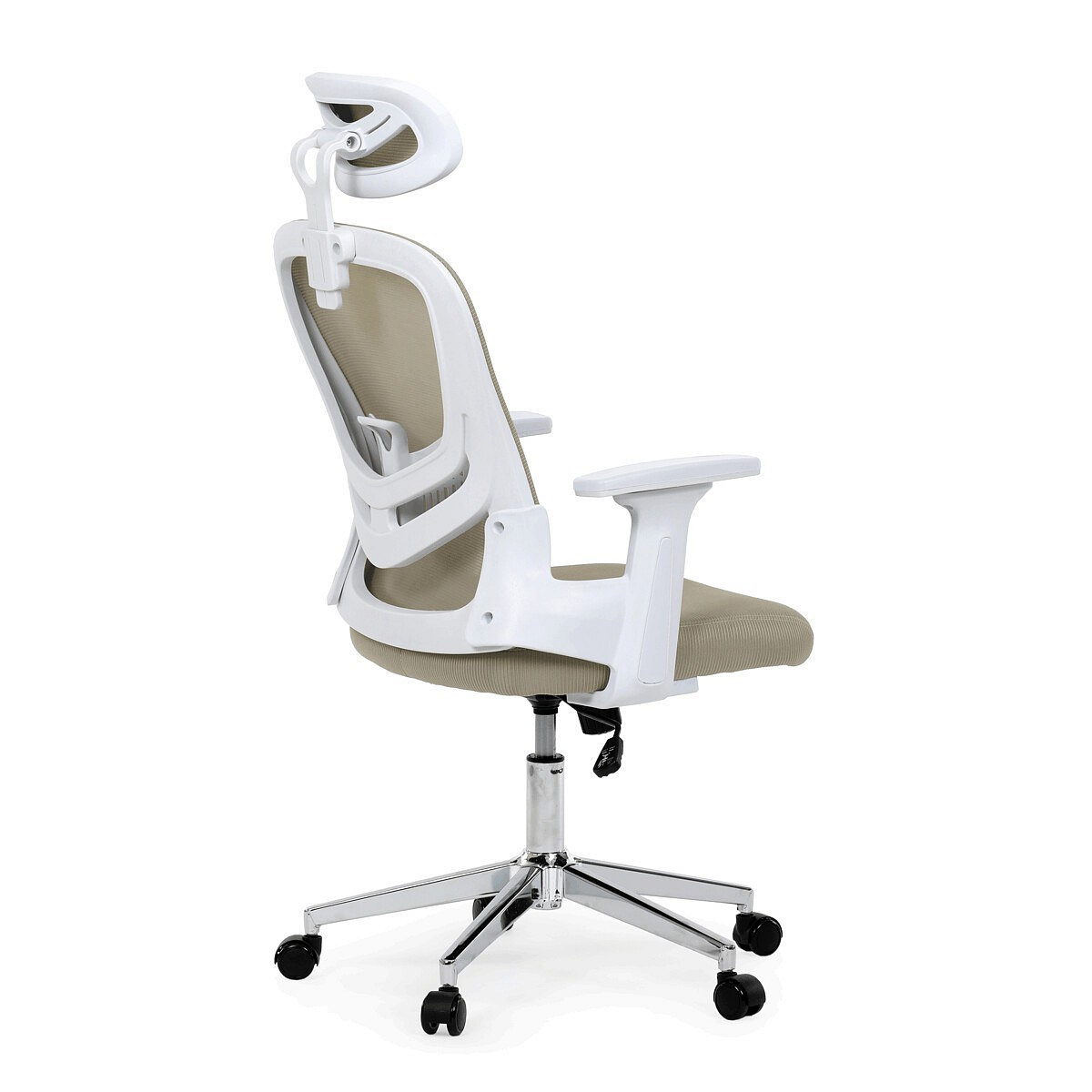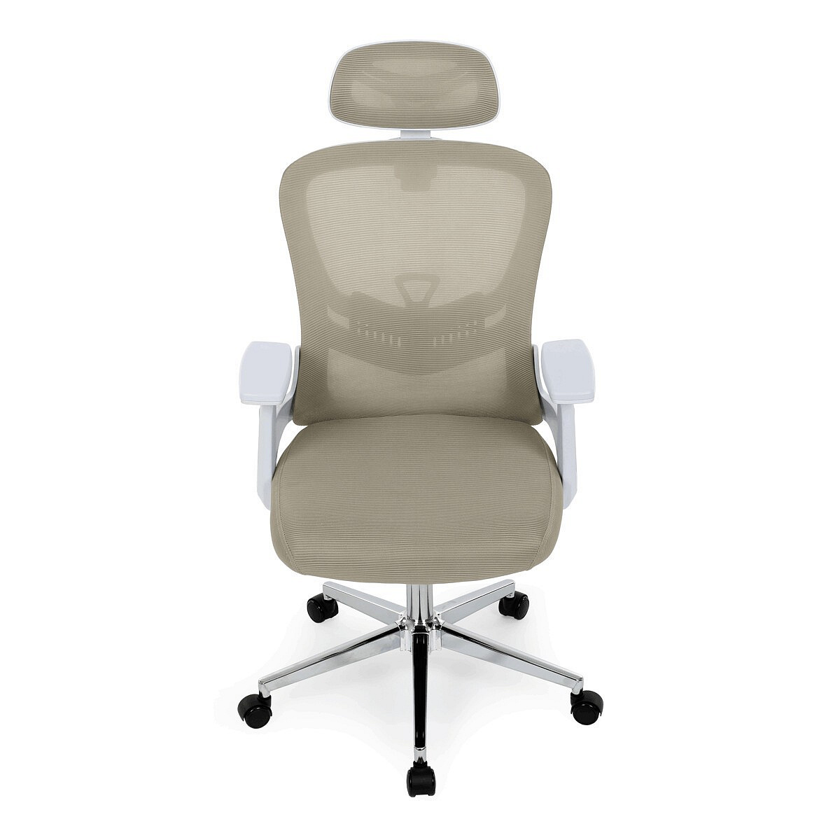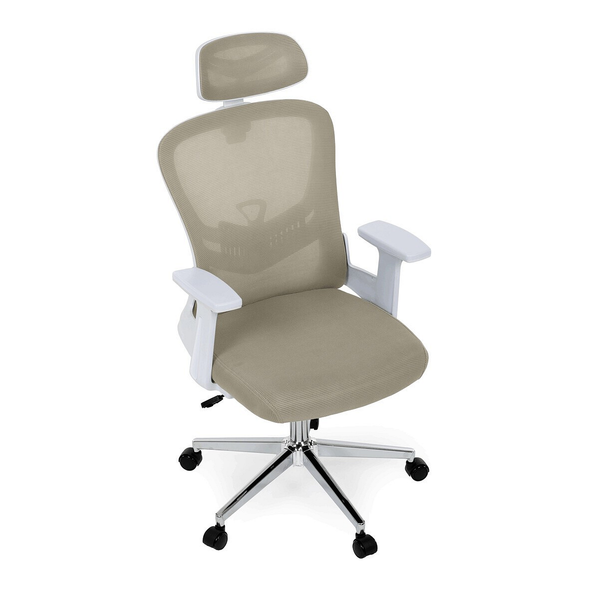 Moderní kancelářská židle značky Autronic v elegantní béžové barvě kombinuje komfort a funkčnost pro každodenní práci. Sedák i opěrák jsou potaženy prodyšnou síťovinou, která zajišťuje optimální cirkulaci vzduchu a pohodlí i při delším sezení. Nastavitelné 2D područky umožňují individuální přizpůsobení podle potřeby. Stabilitu a pevnost zajišťuje chromový kříž s kolečky vhodnými na tvrdé podlahy, které umožňují plynulý pohyb. Stylová a praktická volba pro kanceláře i domácí pracovny.