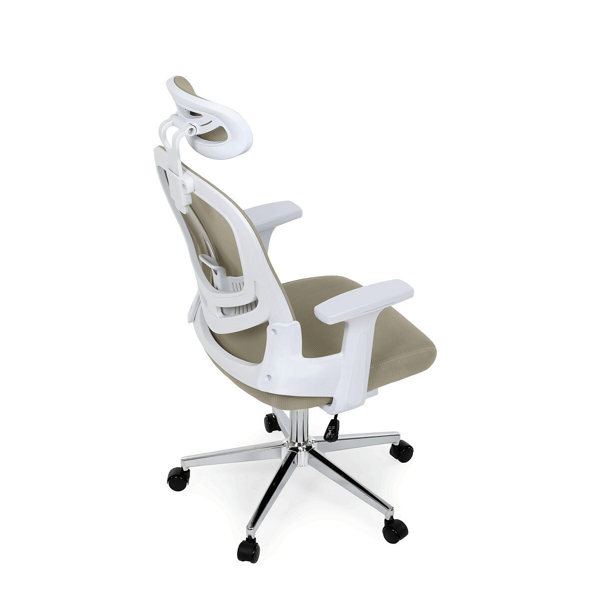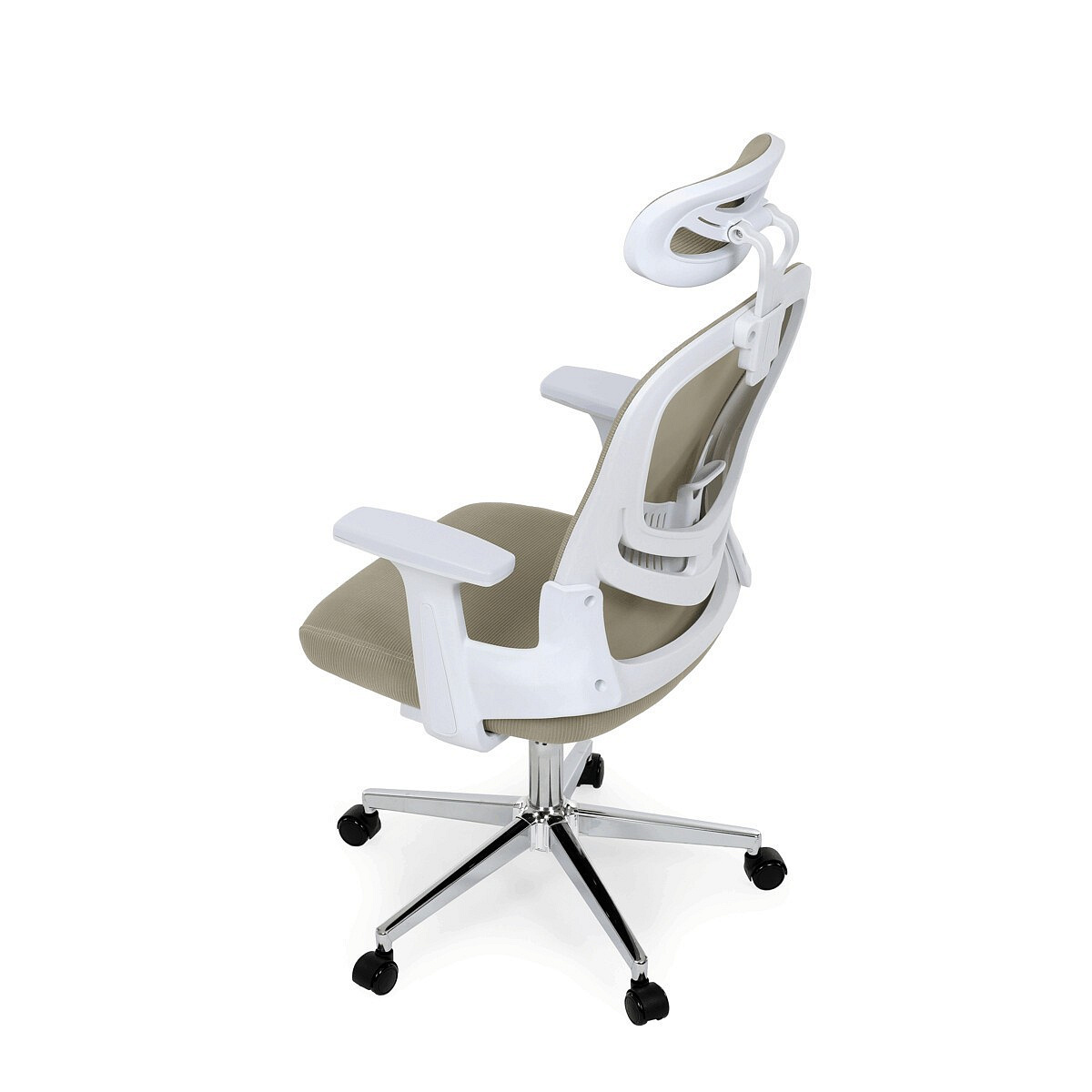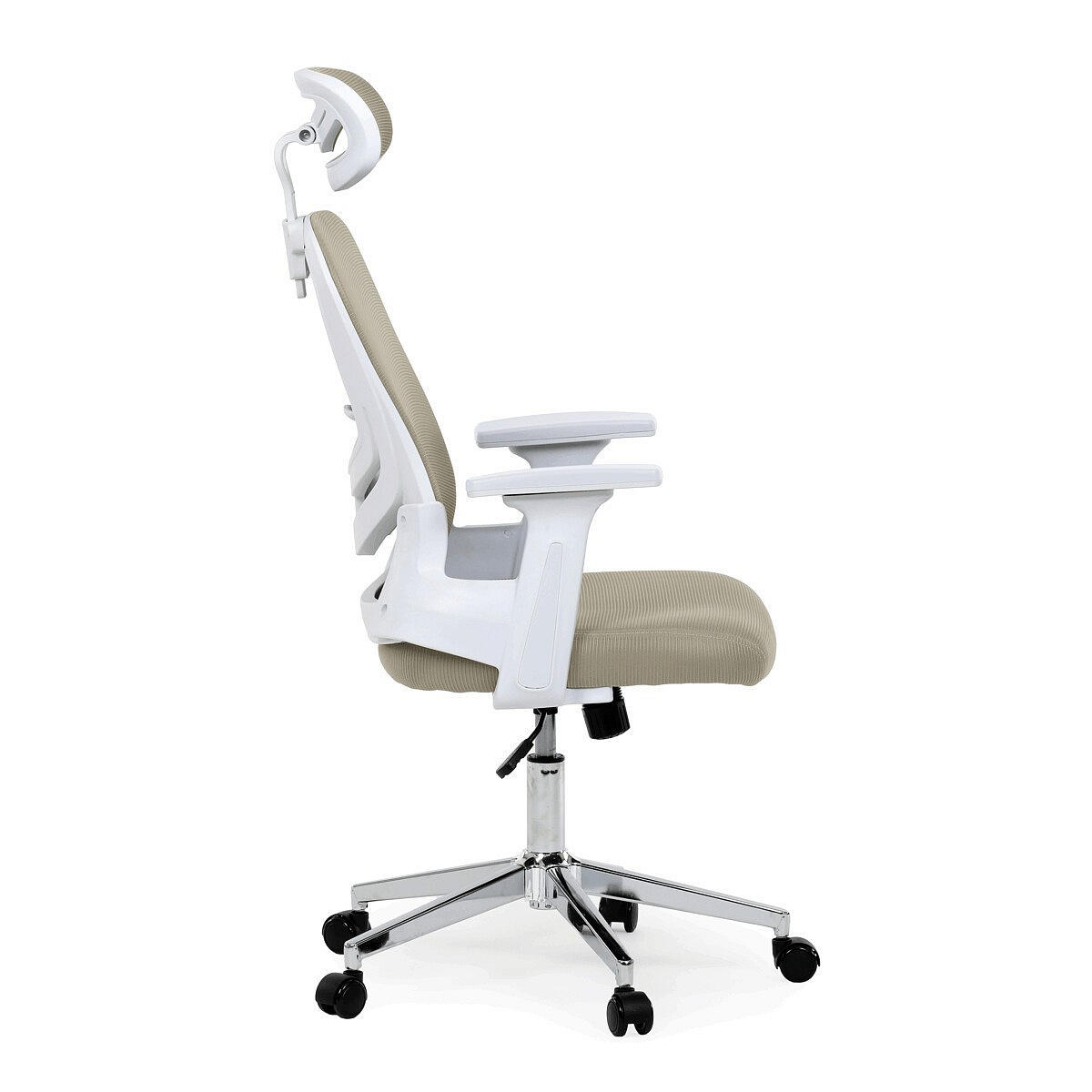 Moderní kancelářská židle značky Autronic v elegantní béžové barvě kombinuje komfort a funkčnost pro každodenní práci. Sedák i opěrák jsou potaženy prodyšnou síťovinou, která zajišťuje optimální cirkulaci vzduchu a pohodlí i při delším sezení. Nastavitelné 2D područky umožňují individuální přizpůsobení podle potřeby. Stabilitu a pevnost zajišťuje chromový kříž s kolečky vhodnými na tvrdé podlahy, které umožňují plynulý pohyb. Stylová a praktická volba pro kanceláře i domácí pracovny.