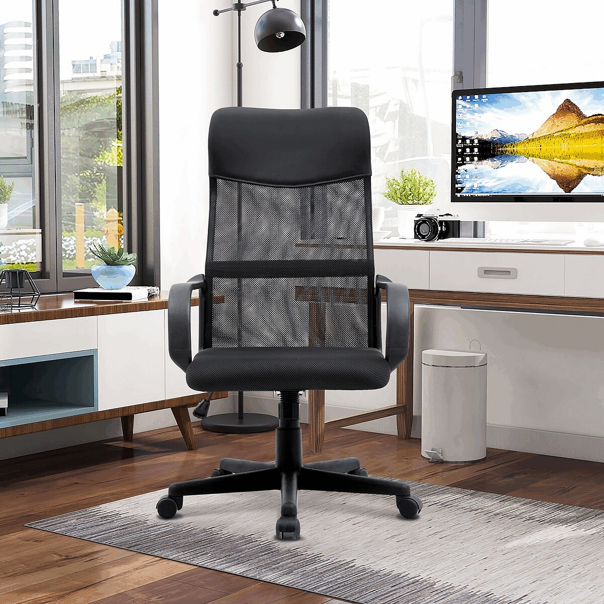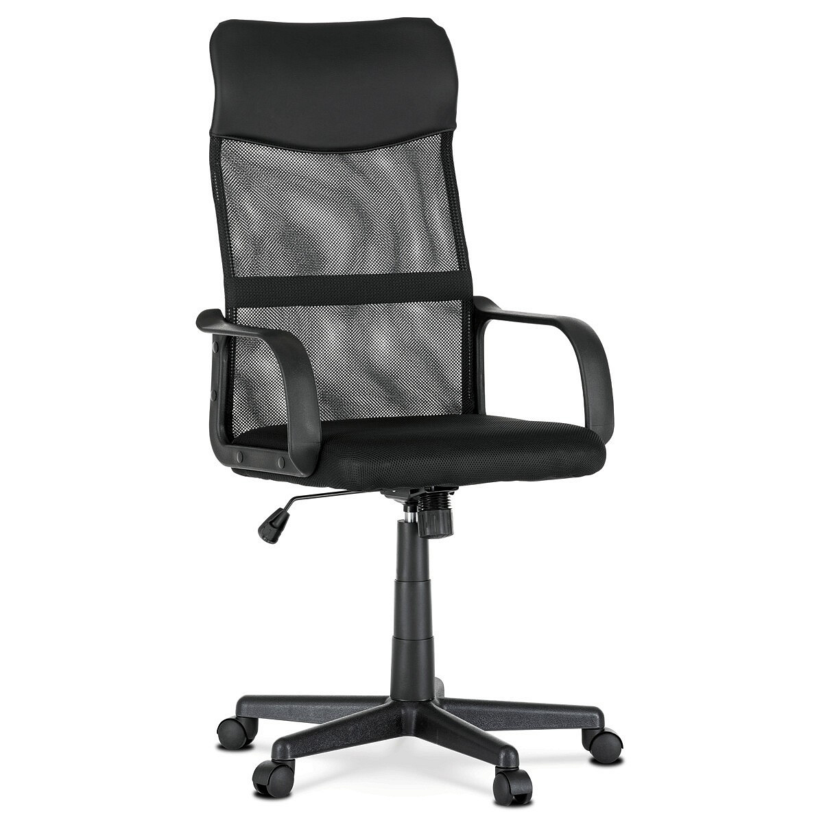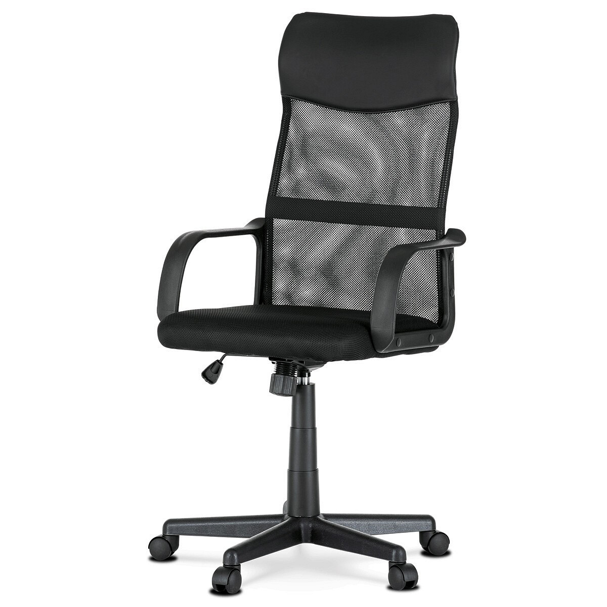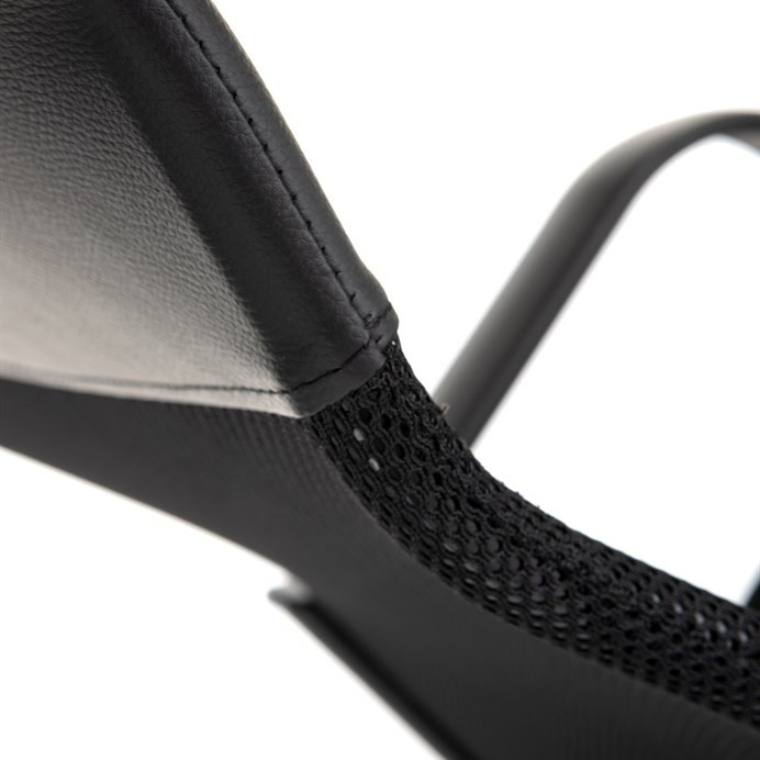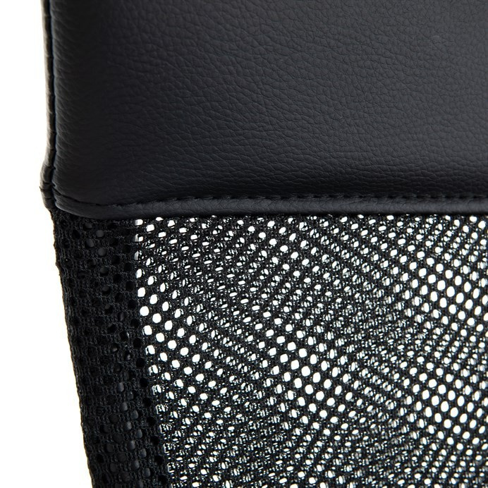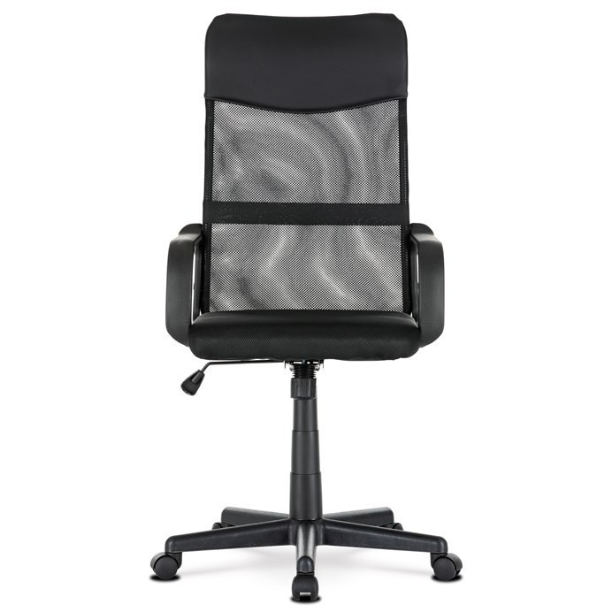 Kancelářská židle KA-L601 BK kombinuje černou ekokůži s prodyšnou síťovinou MESH, která zajišťuje optimální cirkulaci vzduchu během sezení. Pevné područky poskytují stabilní oporu rukám, zatímco houpací mechanismus umožňuje příjemné naklánění s možností nastavení výšky sedáku podle individuálních potřeb. Bederní opěrka podporuje správné držení těla a přispívá k pohodlí při dlouhodobém používání. Plastový kříž s kolečky zajišťuje lehkou mobilitu a stabilitu celé židle. Design v černé barvě je vhodný do moderních kancelářských prostor.
