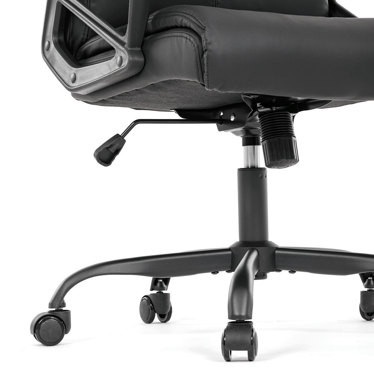 Pohodlná kancelářská židle značky Autronic v elegantním černém provedení, která nabízí maximální komfort během pracovního dne. Židle je čalouněná kvalitní ekokůží, která je snadná na údržbu a příjemná na dotek. Robustní konstrukce a měkké PU pěnové výplně zajišťují dlouhodobou odolnost a pohodlí. Pevné područky a houpací mechanika přidávají na komfortu a poskytují potřebnou podporu. Tato moderní kancelářská židle je ideální volbou pro každou kancelář, kde se klade důraz na styl a pohodlí. Černý kovový kříž s kolečky na tvrdé povrchy zajišťuje stabilitu a snadnou mobilitu.
