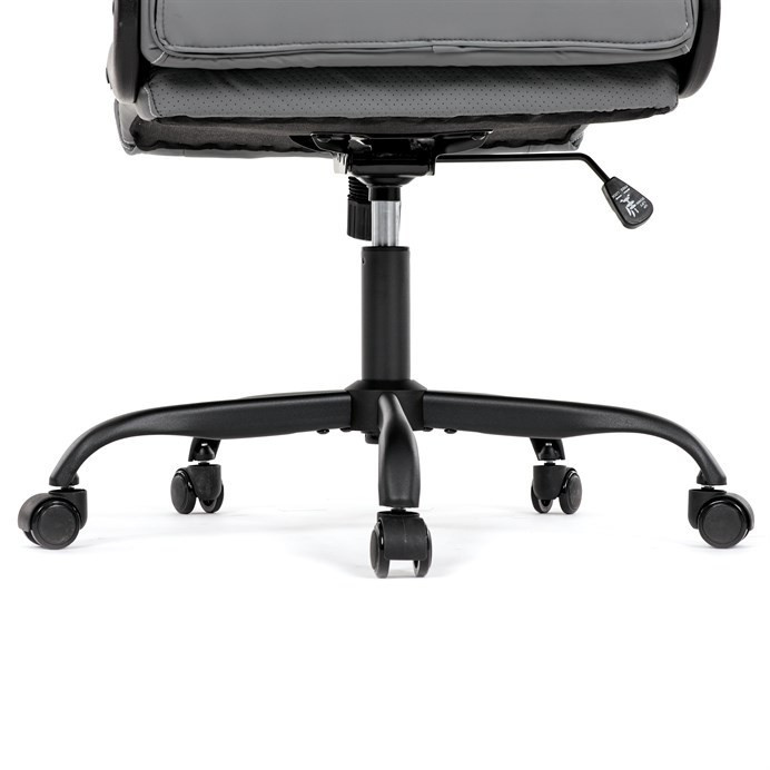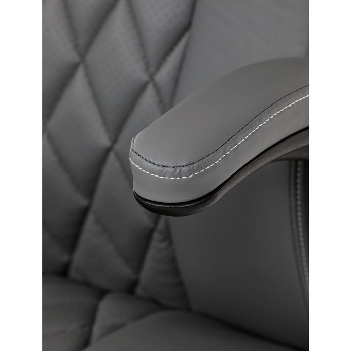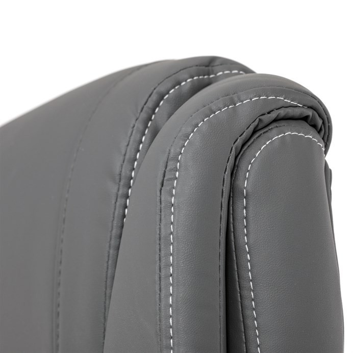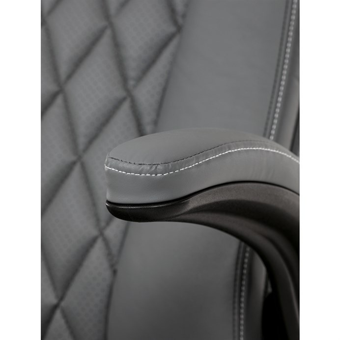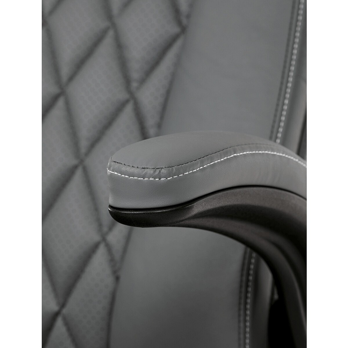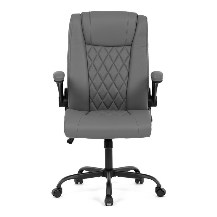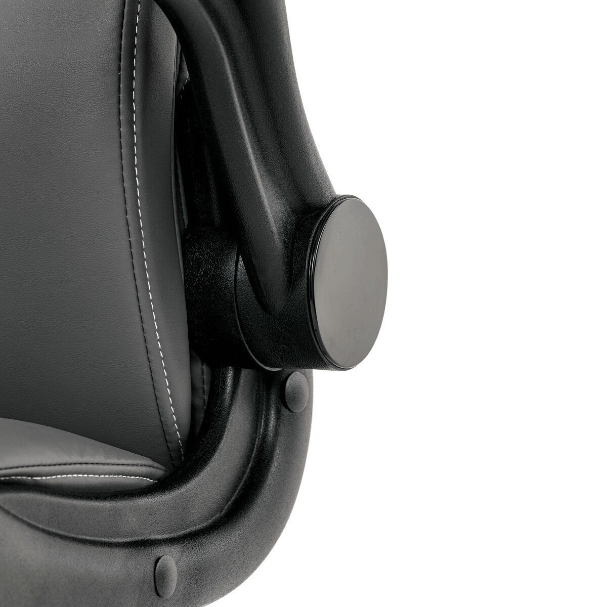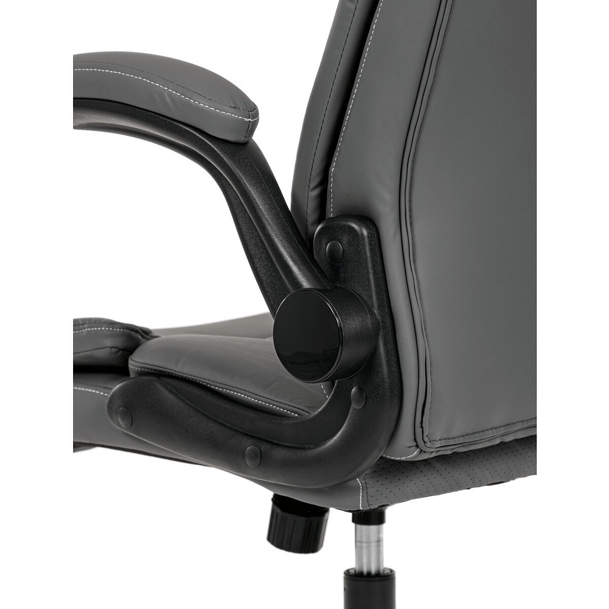 Elegantní kancelářské křeslo značky Autronic kombinuje pohodlí a moderní industriální design. Čalounění z hladké šedé ekokůže působí profesionálně a snadno zapadne do jakéhokoliv kancelářského prostředí. Ozdobné prošití opěrky dodává celku stylový detail. Díky houpacímu mechanismu, výškovému nastavení a odklápěcím područkám nabízí křeslo flexibilitu při každodenním používání. Stabilní kovový kříž a kolečka vhodná na tvrdé povrchy zajišťují plynulý pohyb i dlouhou životnost. Ideální volba pro moderní kancelář s důrazem na komfort.