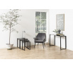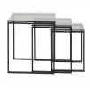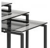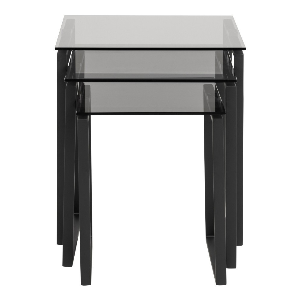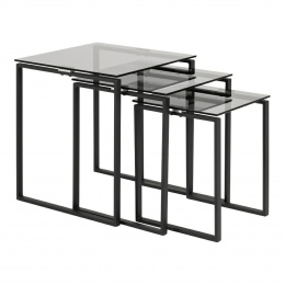 A Katrine modern dohányzóasztal-készlet három különböző méretű asztalból áll. A fém és az üveg időtlen kombinációja érdekes kompozíciót hoz létre. A dohányzóasztalok 8 mm vastag üveg négyzet alakú lapjai füstüvegből készülnek. A fém asztalok alapja feketére lett porszórva. Asztalok méretei (cm): 50x50x55; 43x43x50; 36x36x45 Súly: 17,3 kg. Kartondoboz méretei: 13,3cm x 57,2cm x 53cm