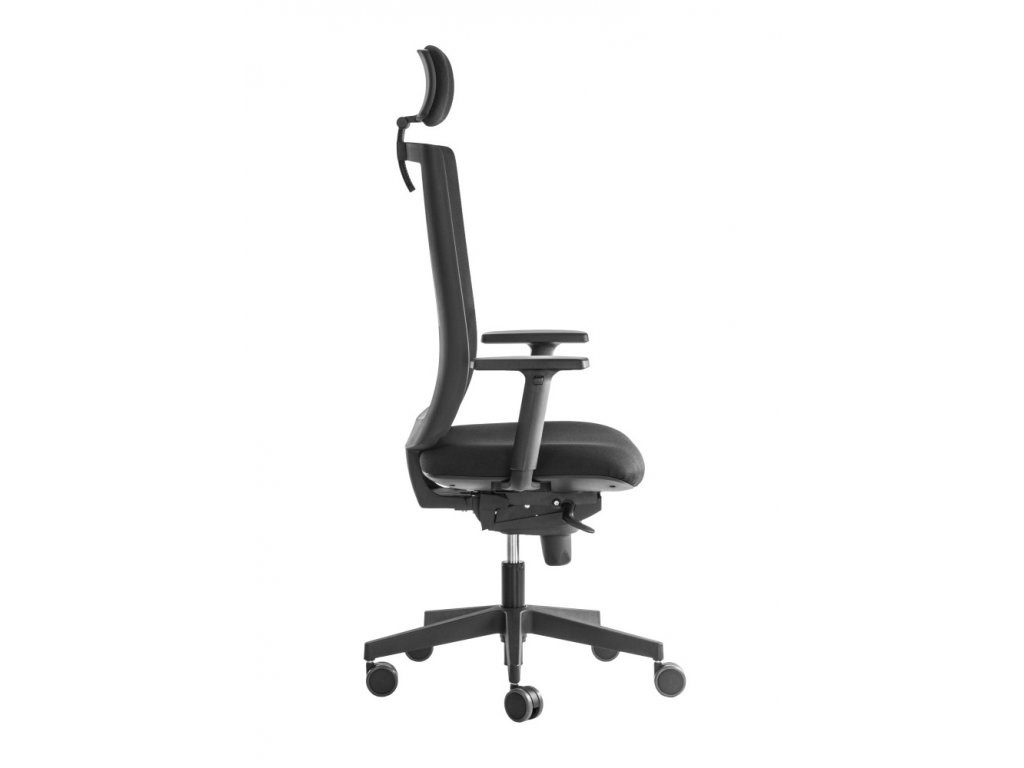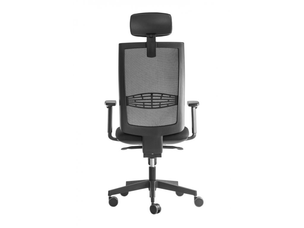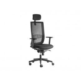 Minőségi elegáns irodai szék légáteresztő háttámlával, kárpitozott 3D állítható fejtámlával és magasságban állítható kartámaszokkal. A szék szinkron mechanikával és magasságban állítható deréktámasszal van felszerelve.
