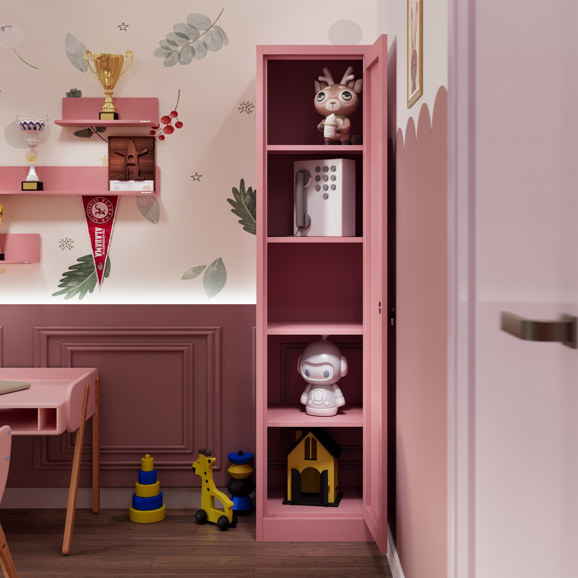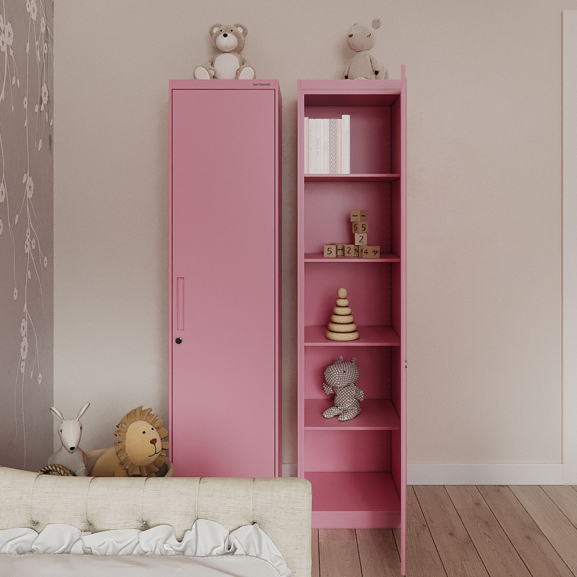 Keskeny szekrény az ALEX irodába, 450 x 1850 x 400 mm, Fresh Style: púderrózsaszín